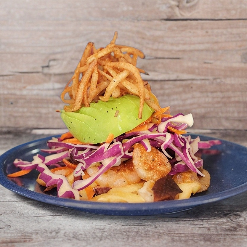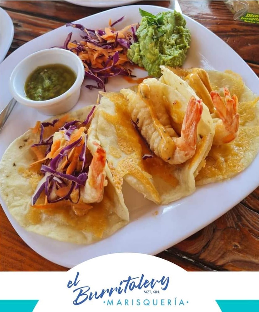 3 piezas. Camarón, costra de queso, arroz, lechuga, guacamole y salsa tatemada.