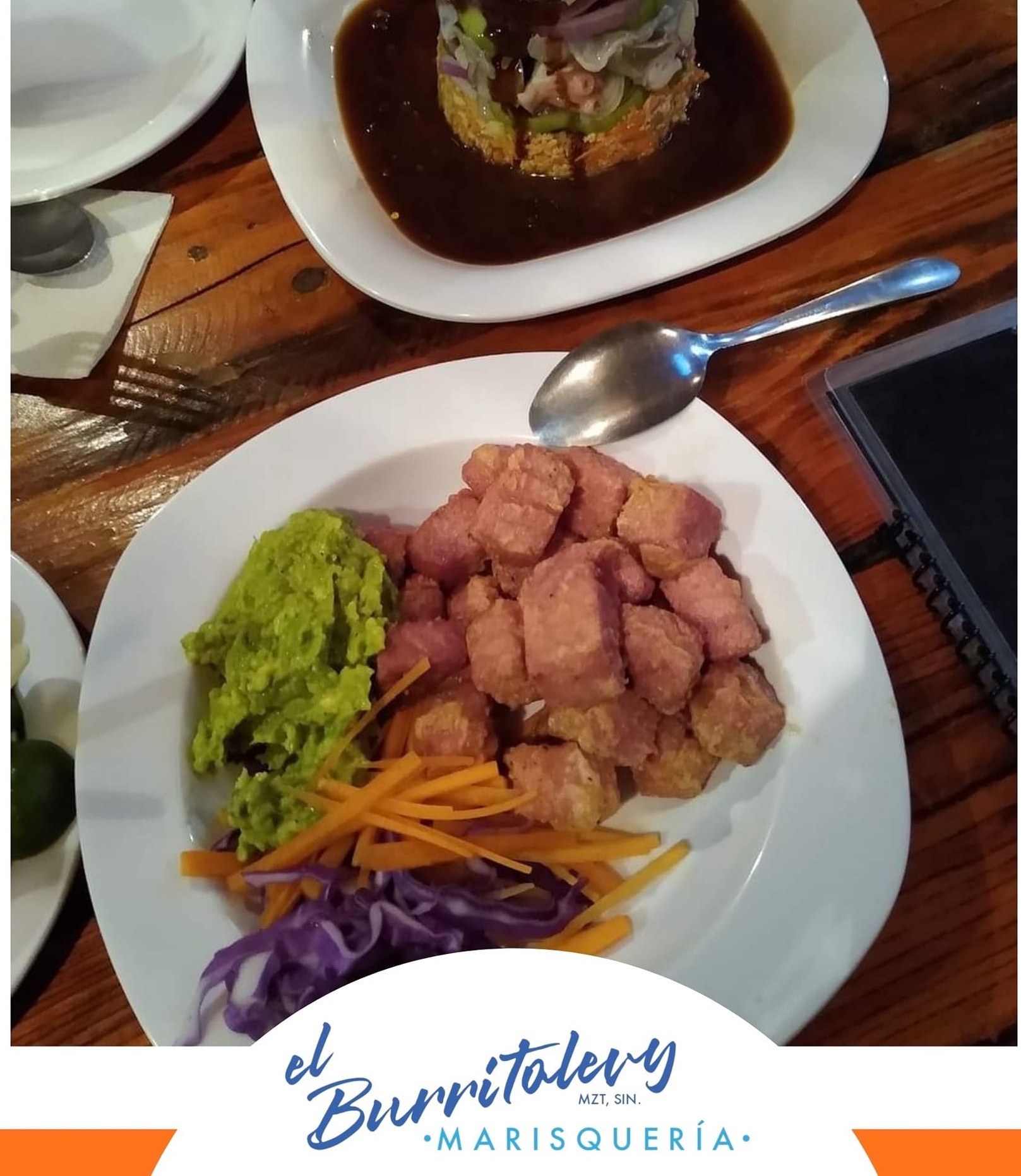 Cubos fritos de atún con guacamole.