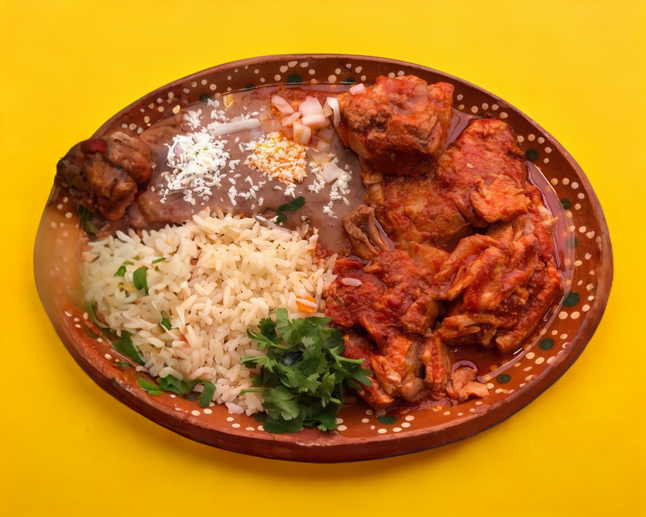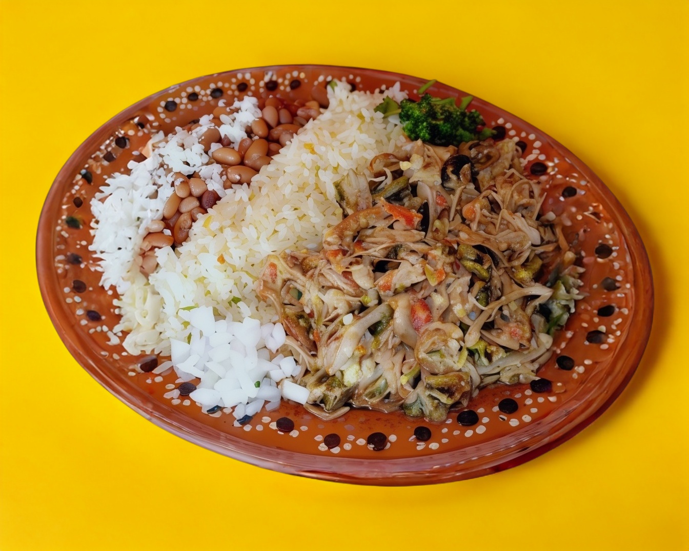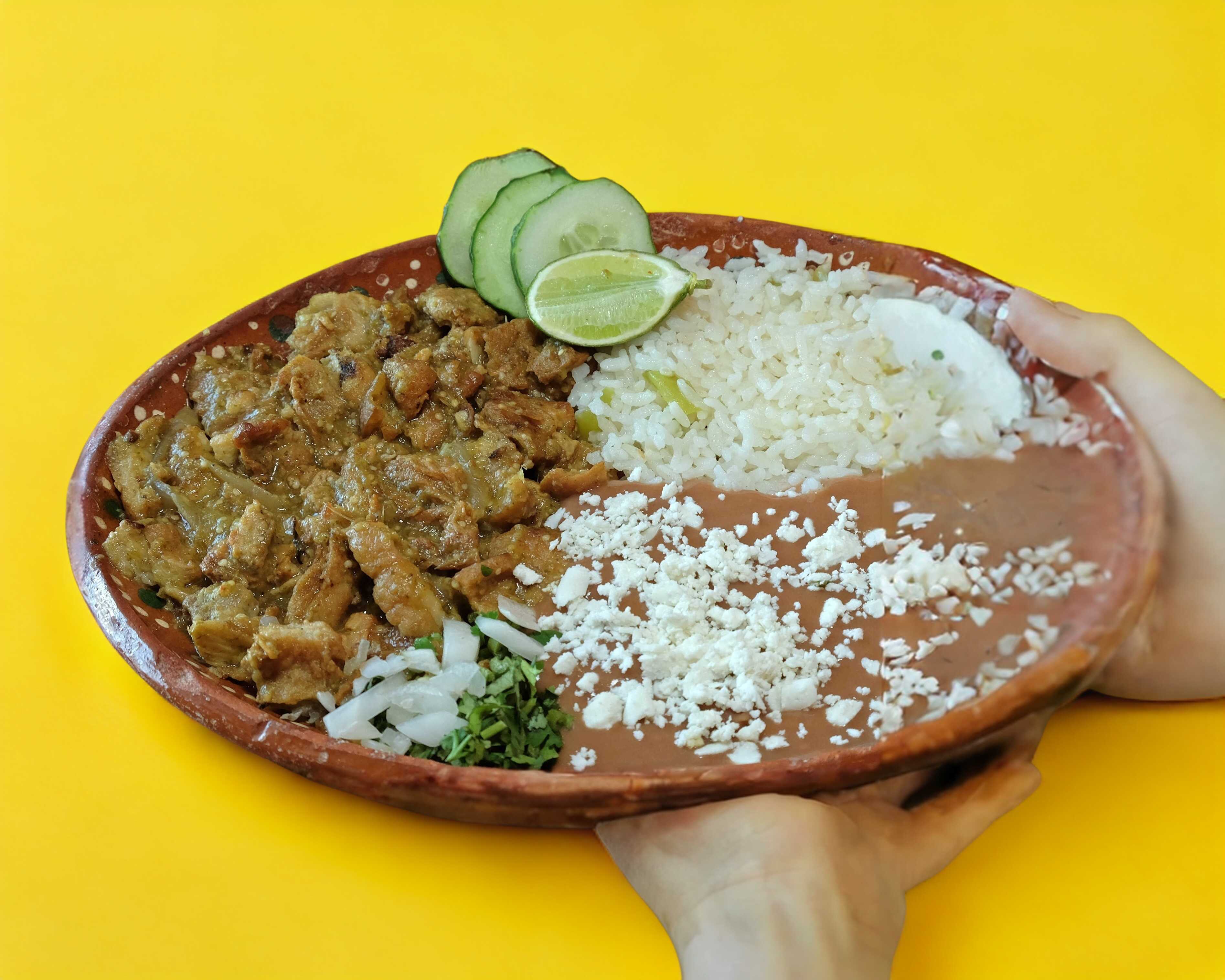 Incluye arroz, frijoles y 3 tortillas hechas a mano.