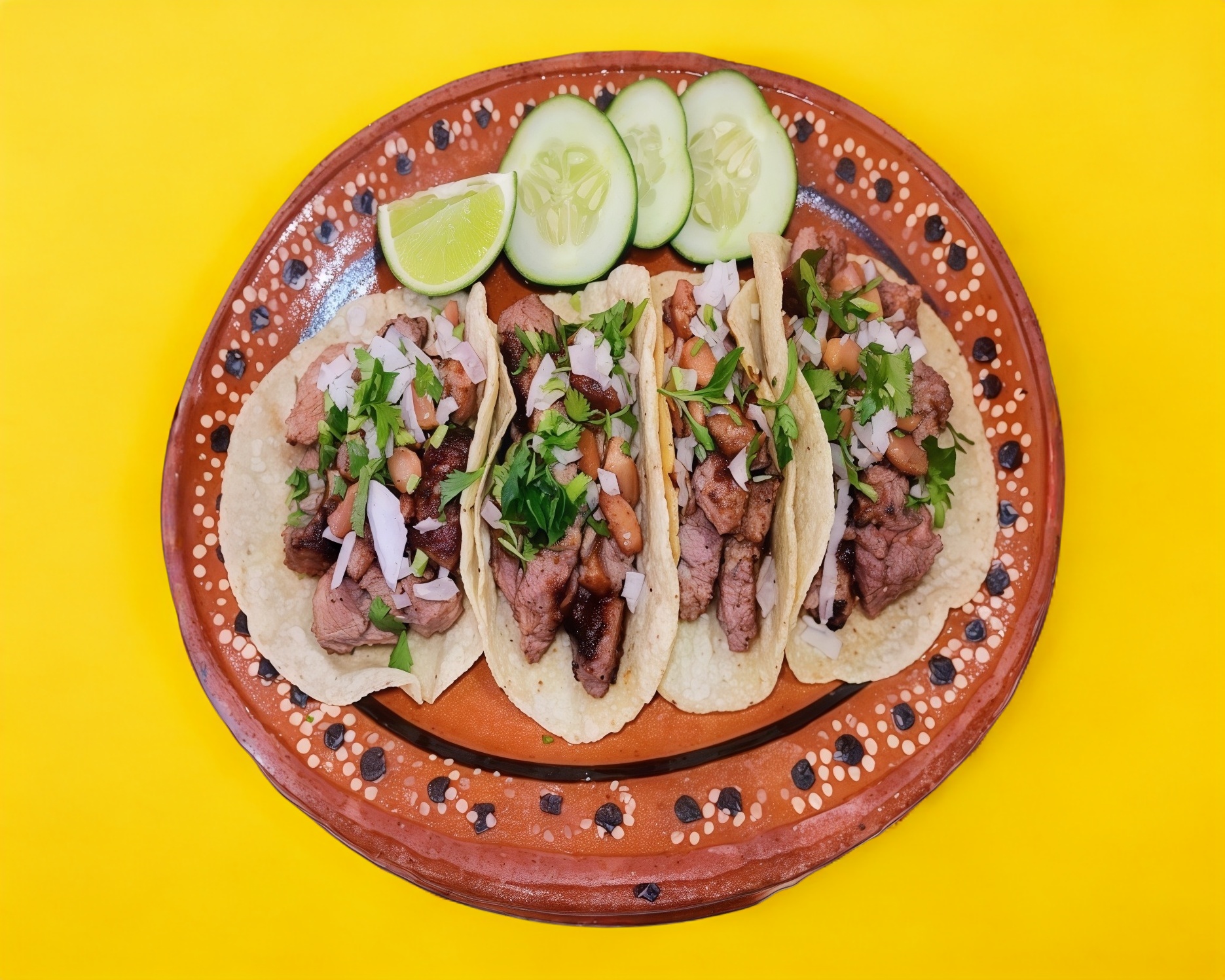 Disfruta de nuestros legendarios tacos de arrachera, una orden de cuatro suculentos taquitos servidos en tortillas recién hechas a mano. Acompañados de frijoles de la olla, cebolla fresca y un toque de cilantro, estos tacos son la combinación perfecta de sabor y tradición, ¡una experiencia gastronómica que no te puedes perder!.