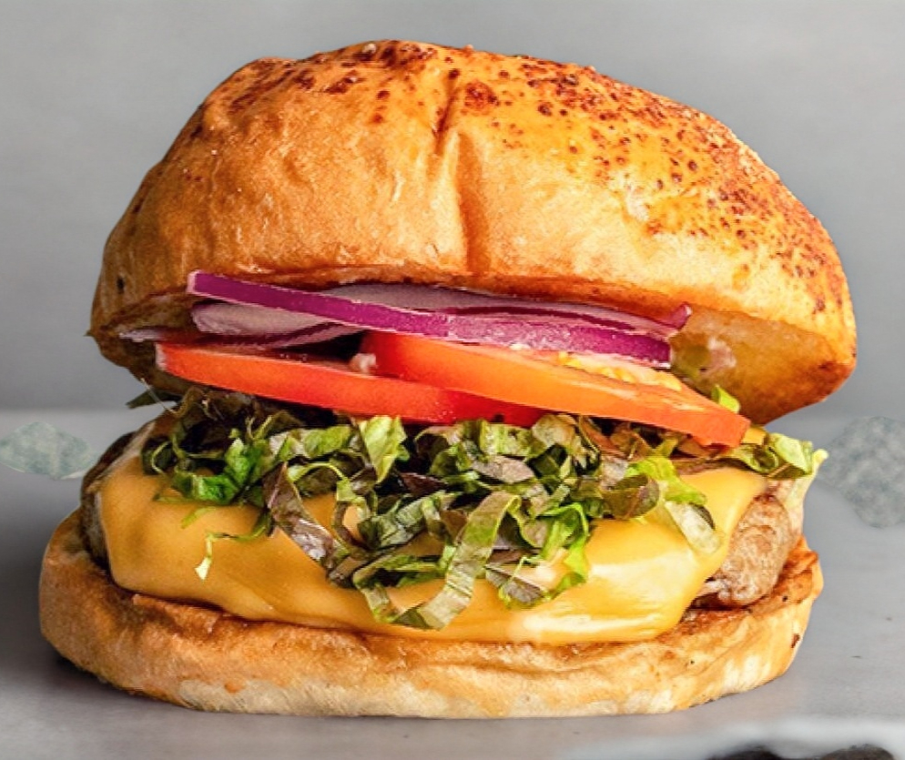 Incluye papas. Carne 180 g, Queso americano, lechuga, tomate, cebolla morada, crema y mayonesa