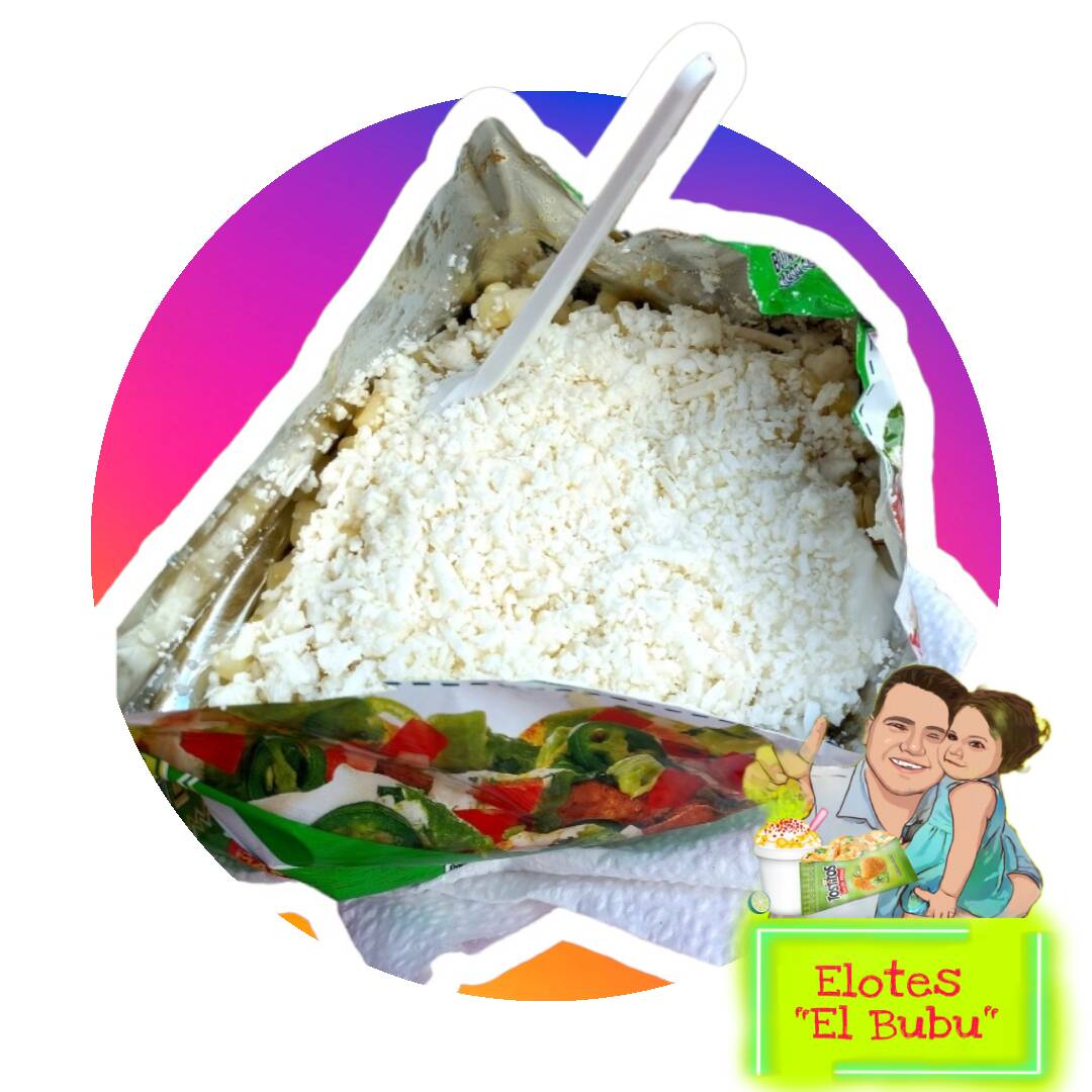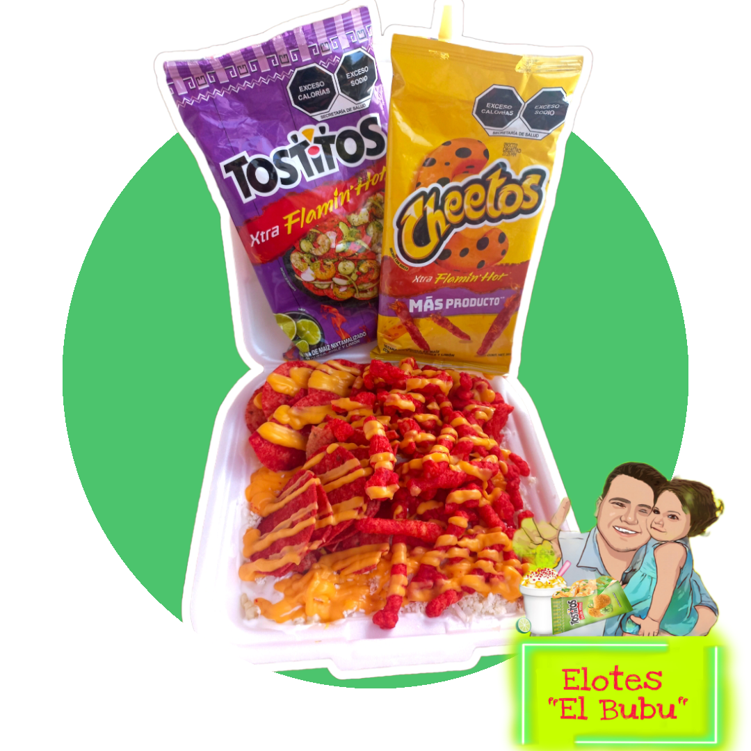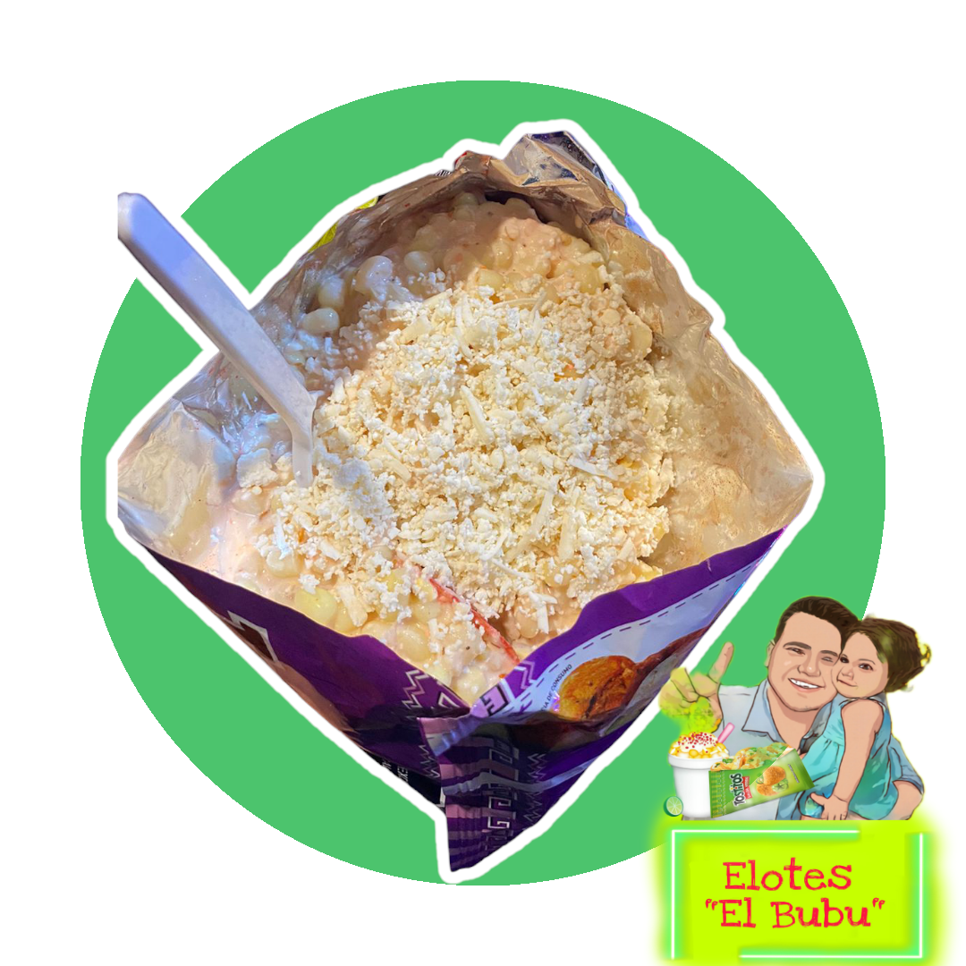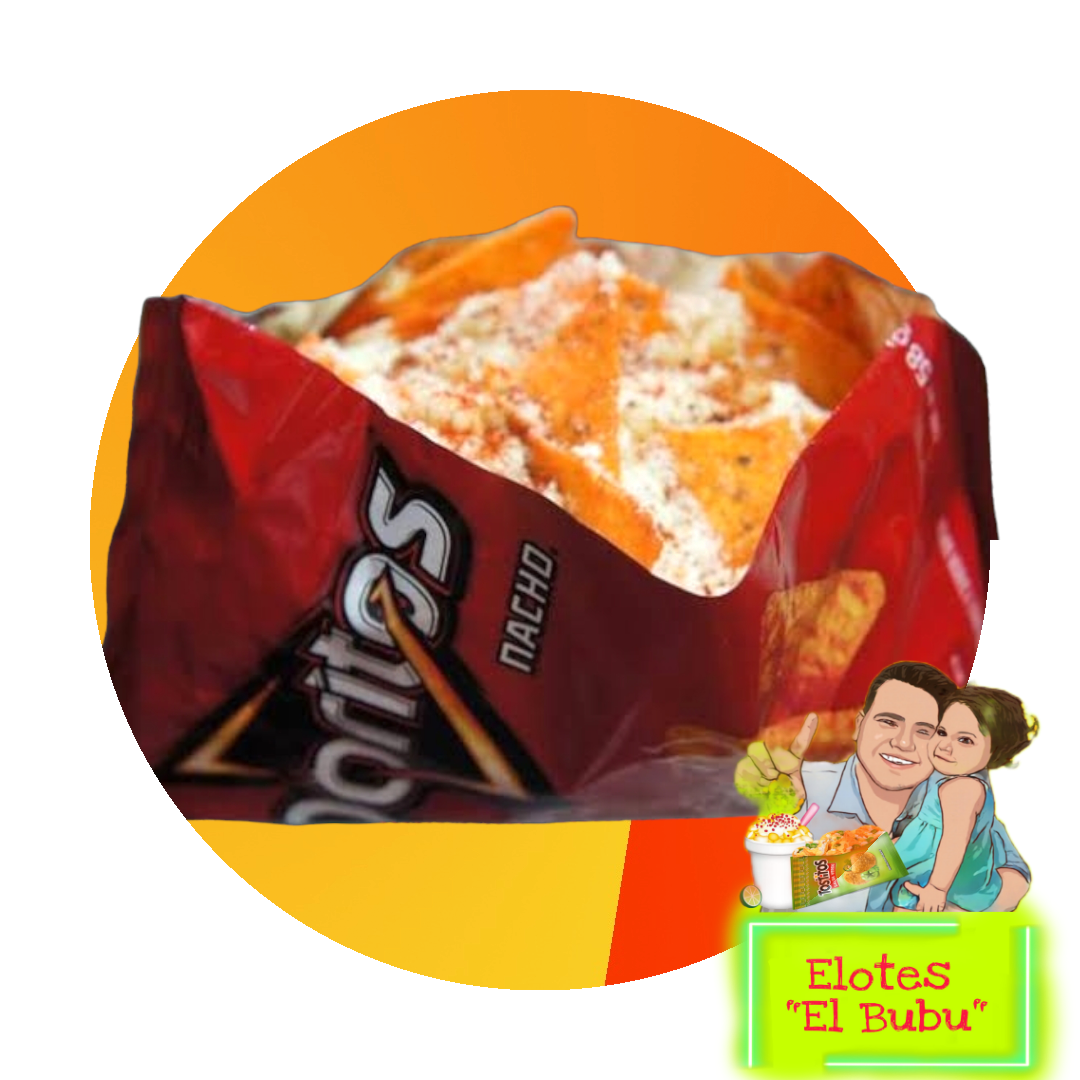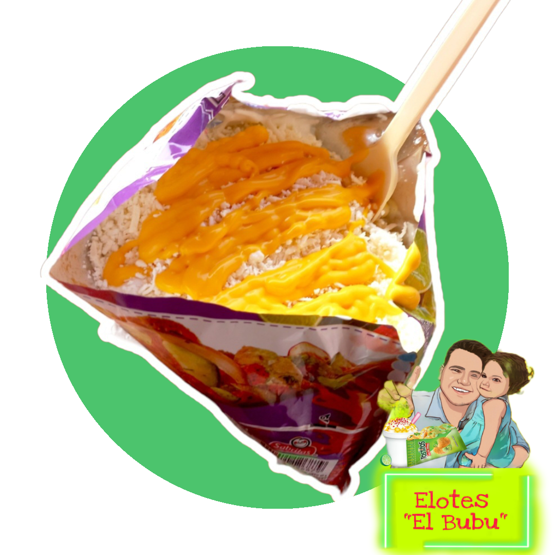 Preparado con elote natural, crema, queso rayado, queso amarillo, salsa especial de la casa acompañada de tus dos sabritas favoritas.