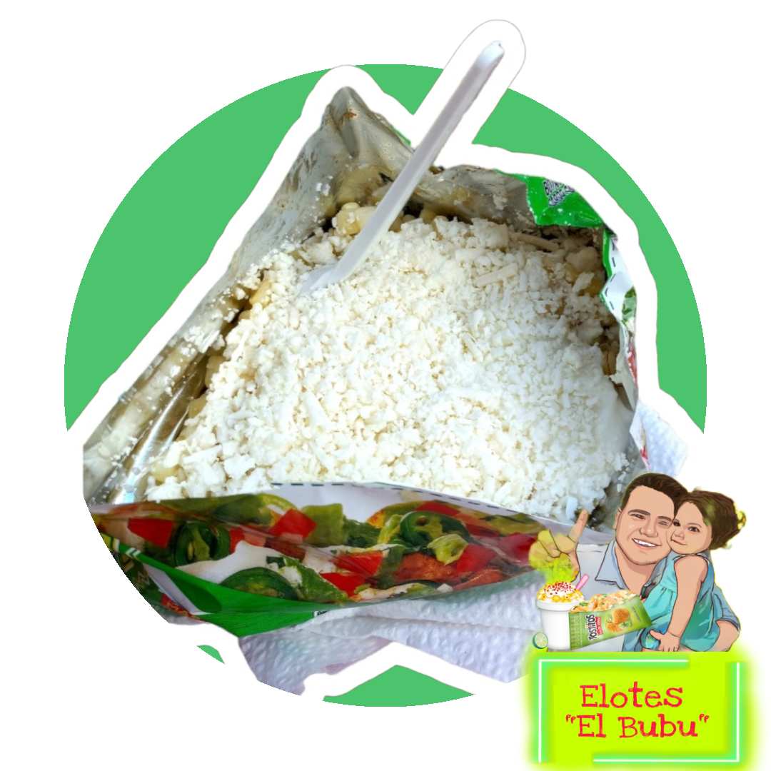 Preparado con elote natural, crema, queso rayado, queso amarillo, salsas opcionales