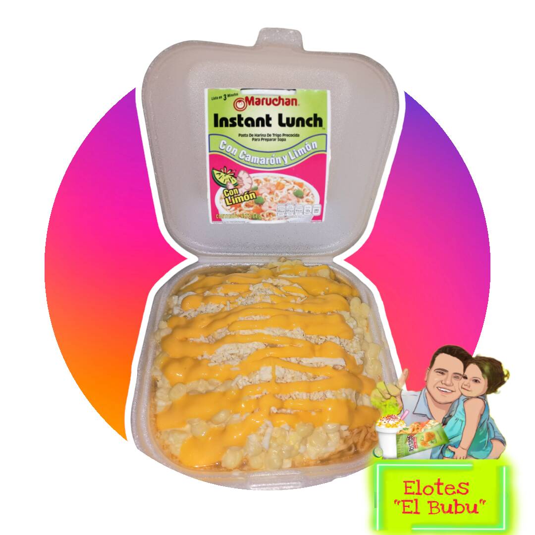 Preparado con elote natural, crema, queso rayado, queso amarillo, salsas opcionales y maruchan