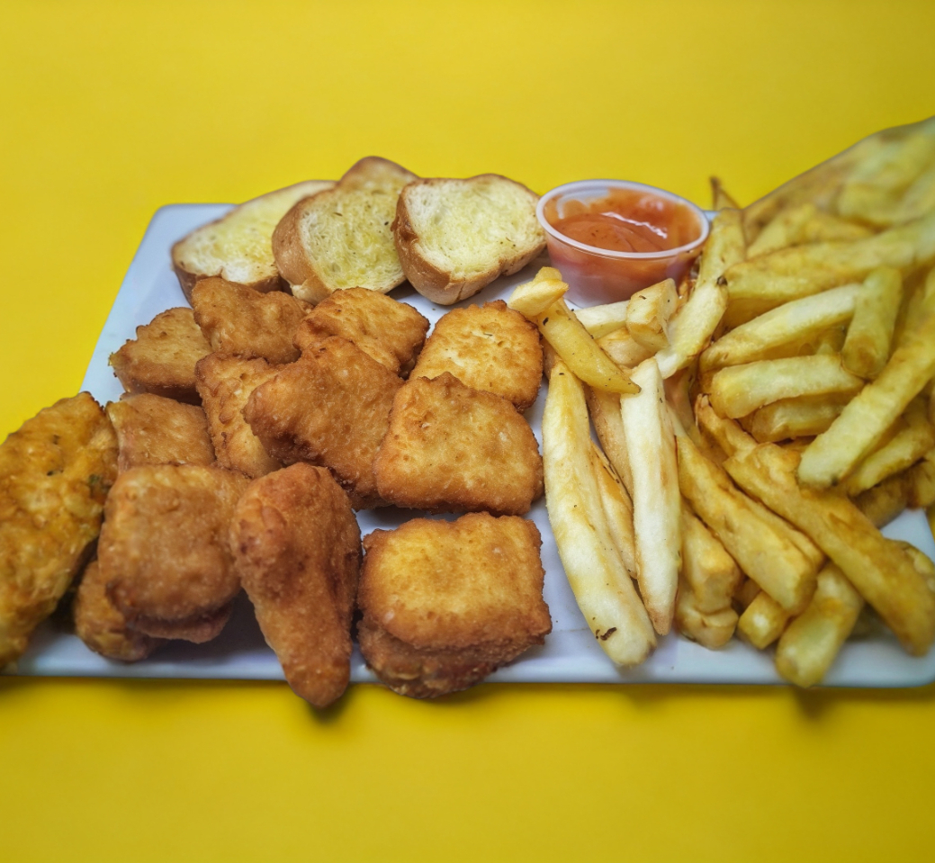 280 gr de Tenders de pechuga, acompañado de aderezo, papas a la francesa y pan con mantequilla