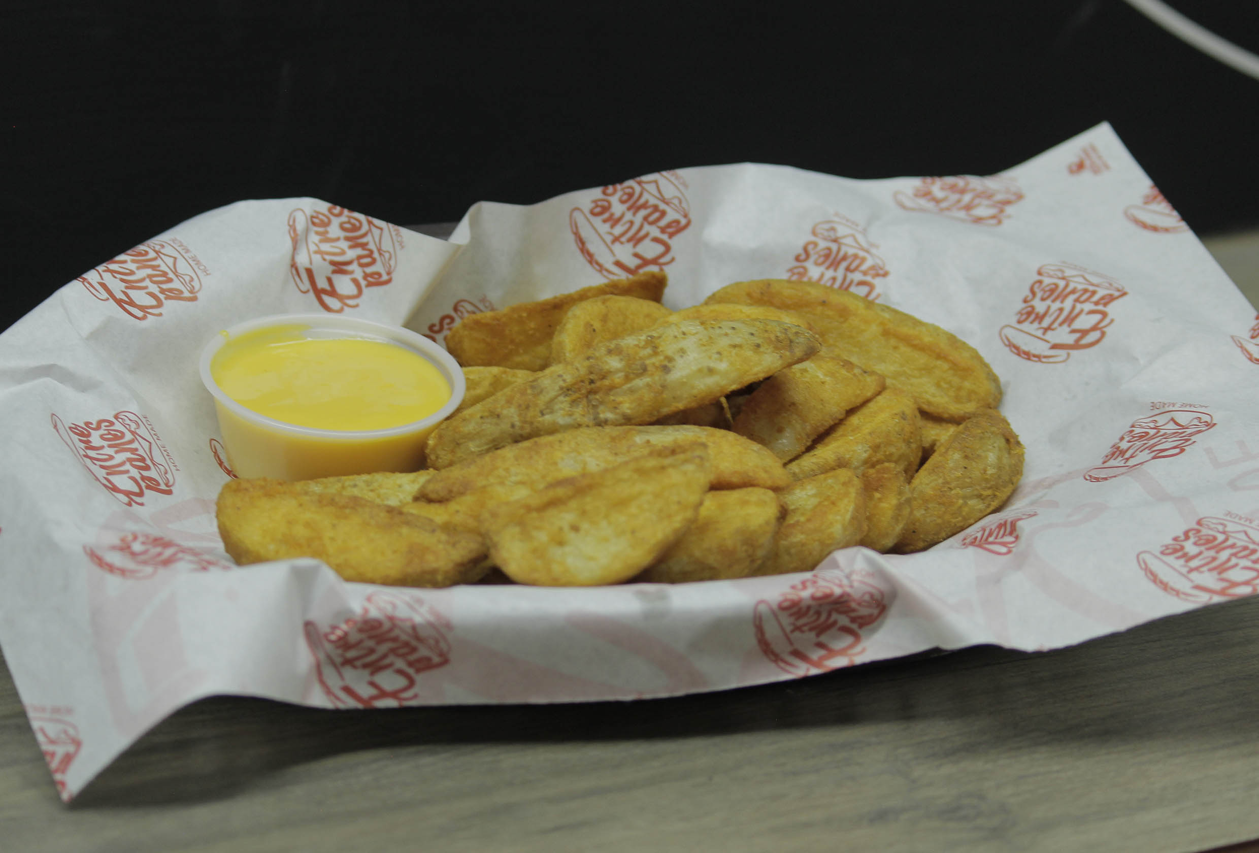 Pan artesanal, carne al pastor, piña, cebolla, cilantro y salsa. Incluye papas a la francesa