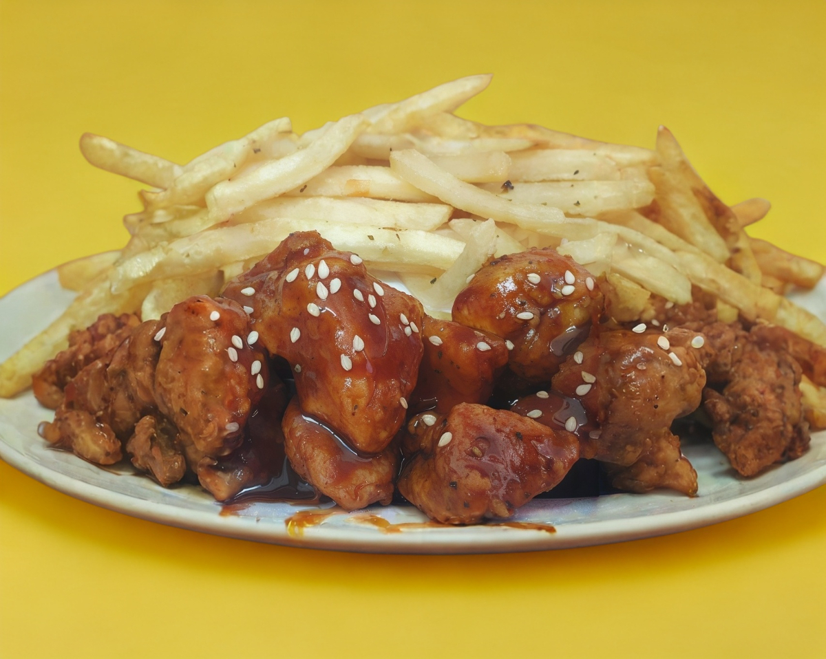 1 Kg. de Boneless, hechos en casa con pechuga de pollo, bañados con tu salsa favorita. Papas a la francesa Gratis.