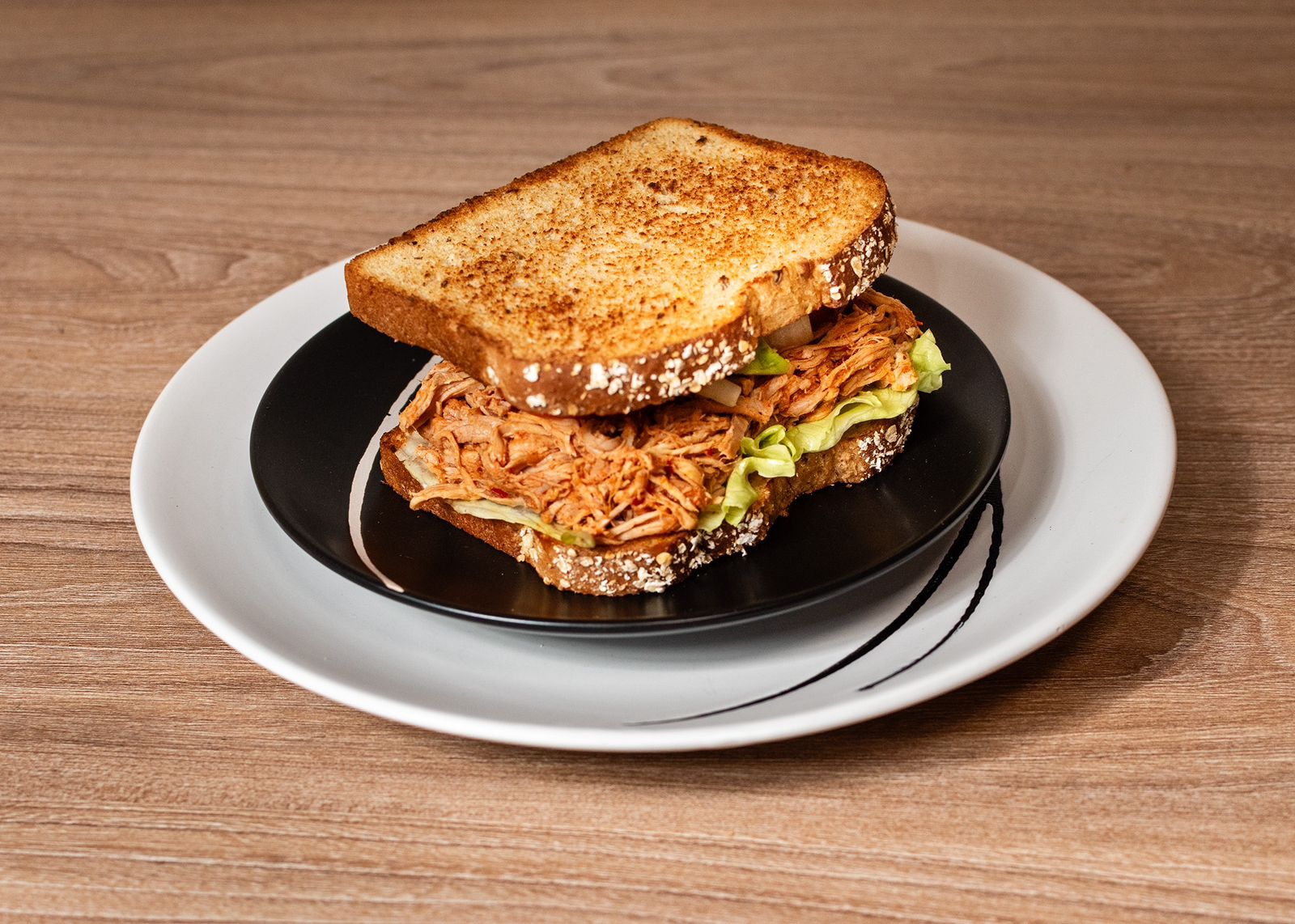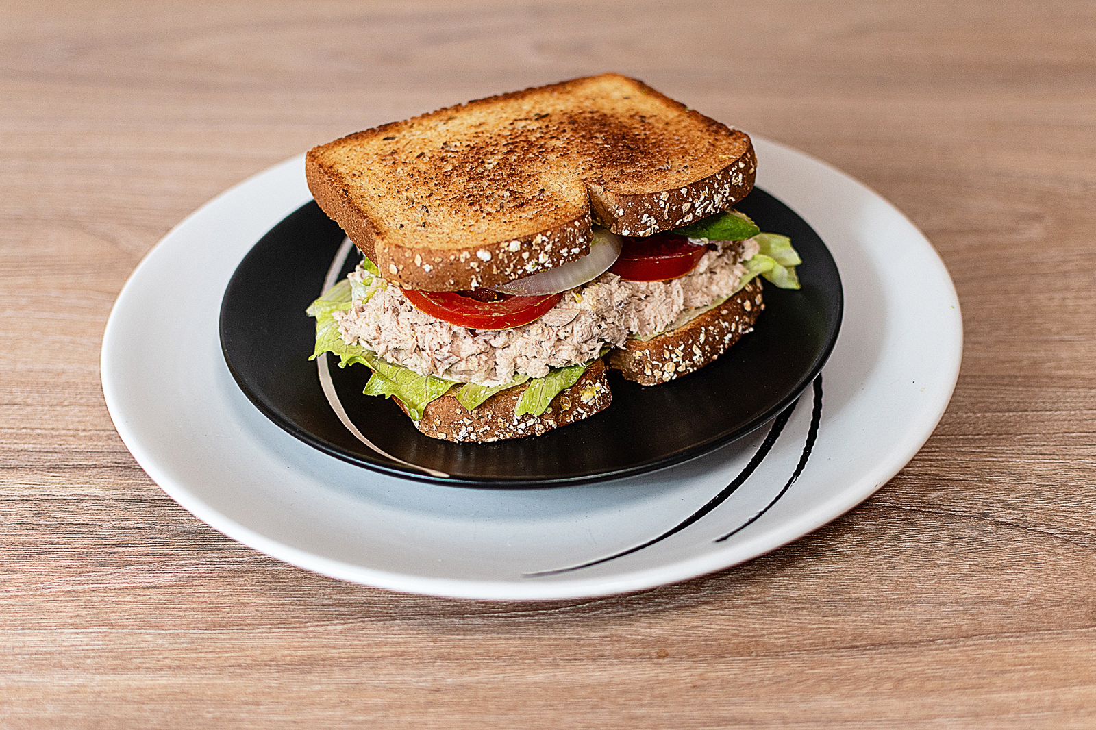 Atún en agua, cebolla, tomate, aguacate, chile jalapeño, mayonesa y lechuga.