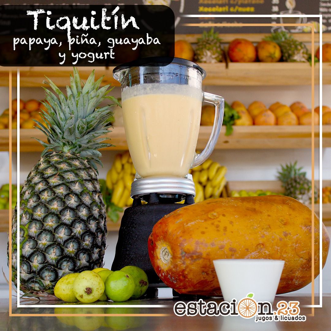 Mango, papaya, piña, guayaba, miel y yogurt.