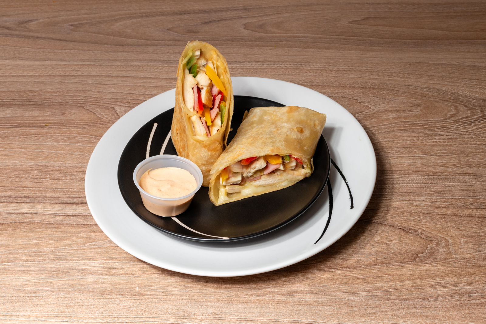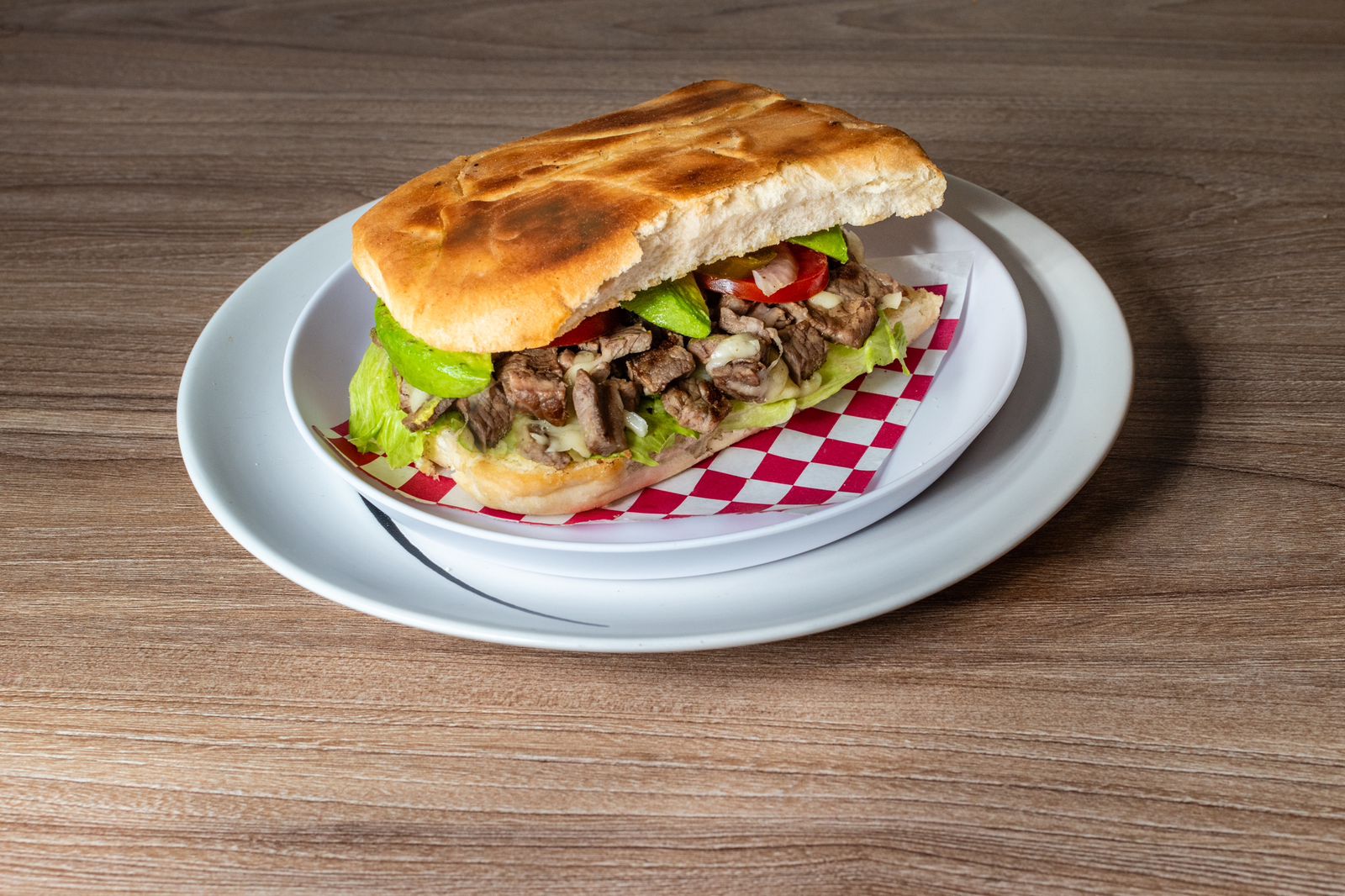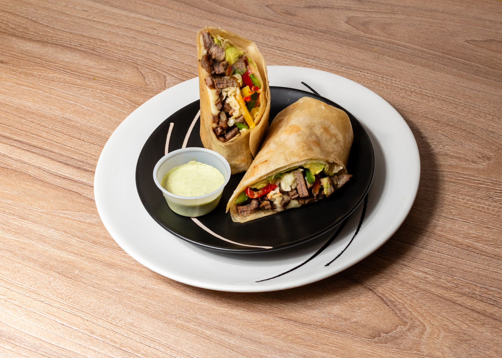 Sirloin, queso chihuahua, cebolla asada, crema, chile morrón asado y aguacate.