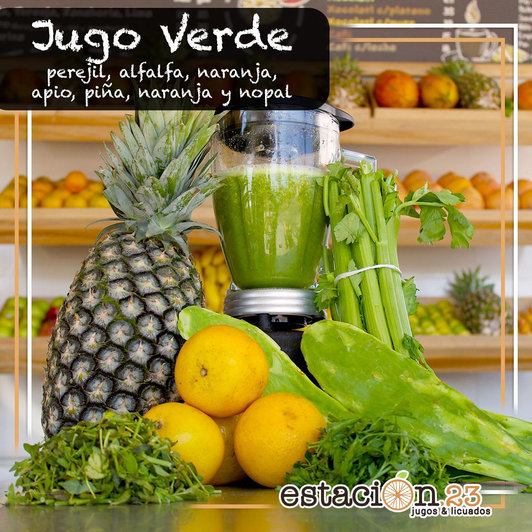 Piña, nopal, alfalfa, apio, perejil, espinaca, naranja y miel.