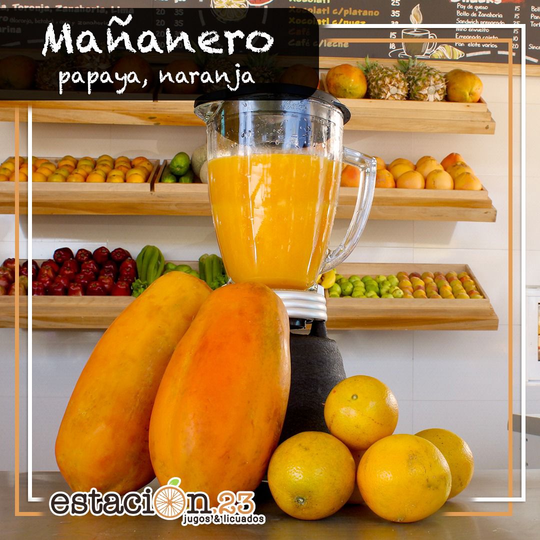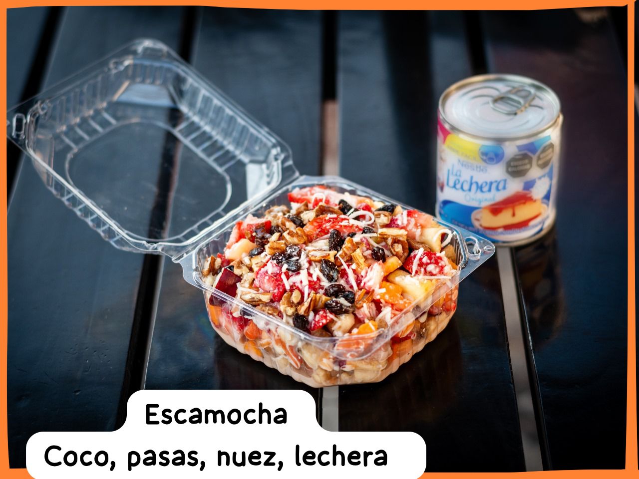 Papaya, manzana, plátano, fresa, melón, cereales y Lecherita.