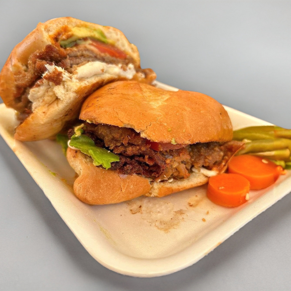 Torta mixta de milanesa de res empanizada con salchicha de pavo