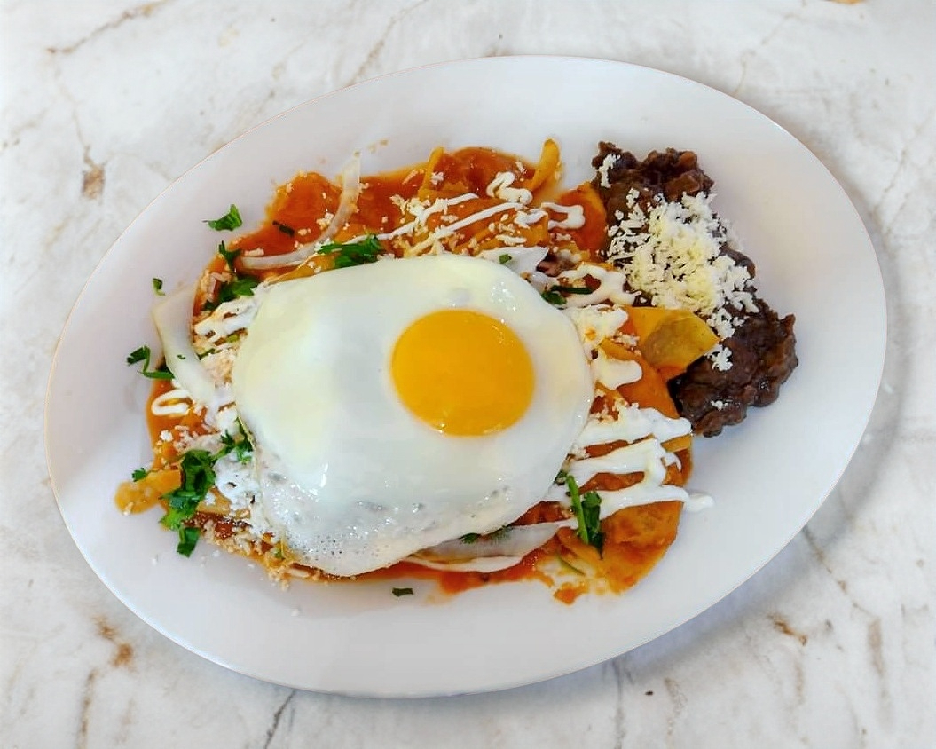 Jamón, tocino, salchicha, longaniza o a la mexicana, servido con chilaquiles y frijolitos.