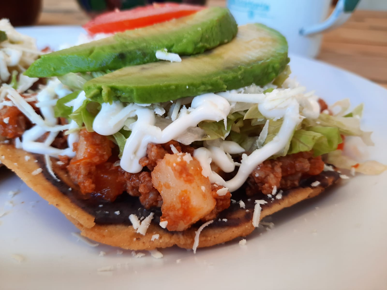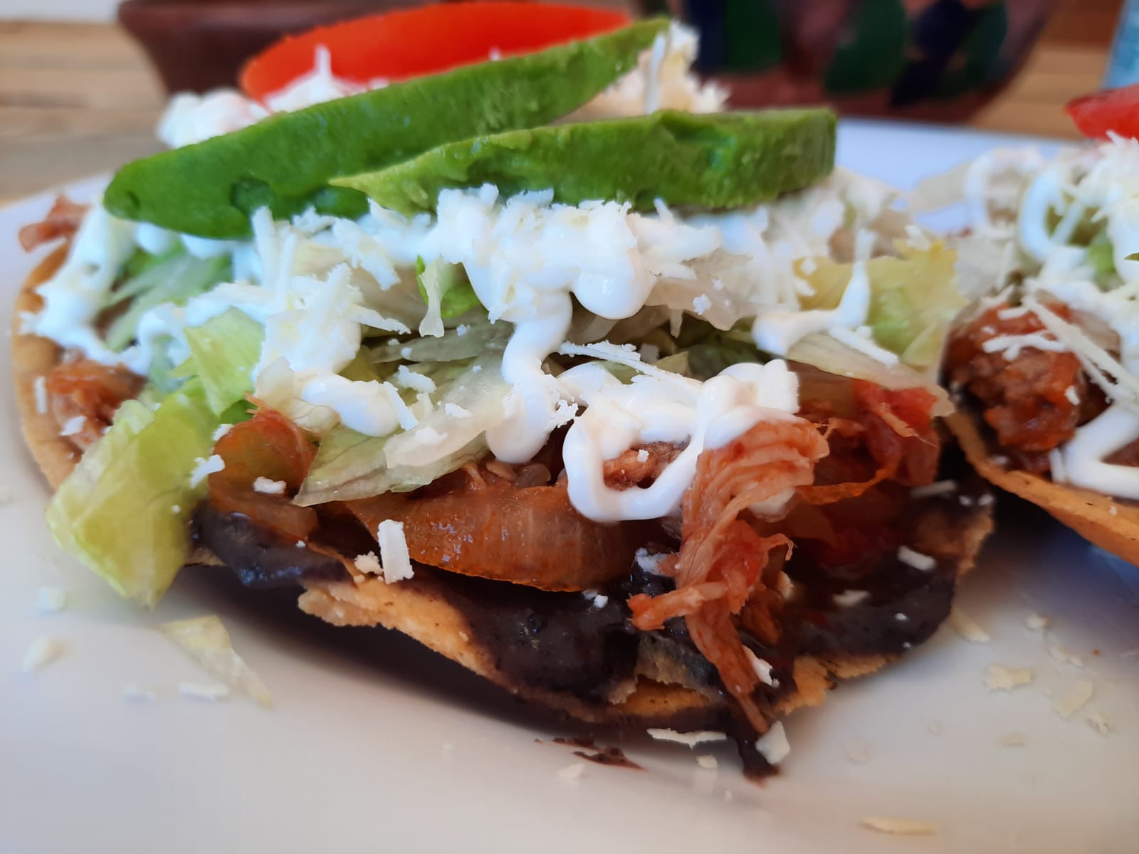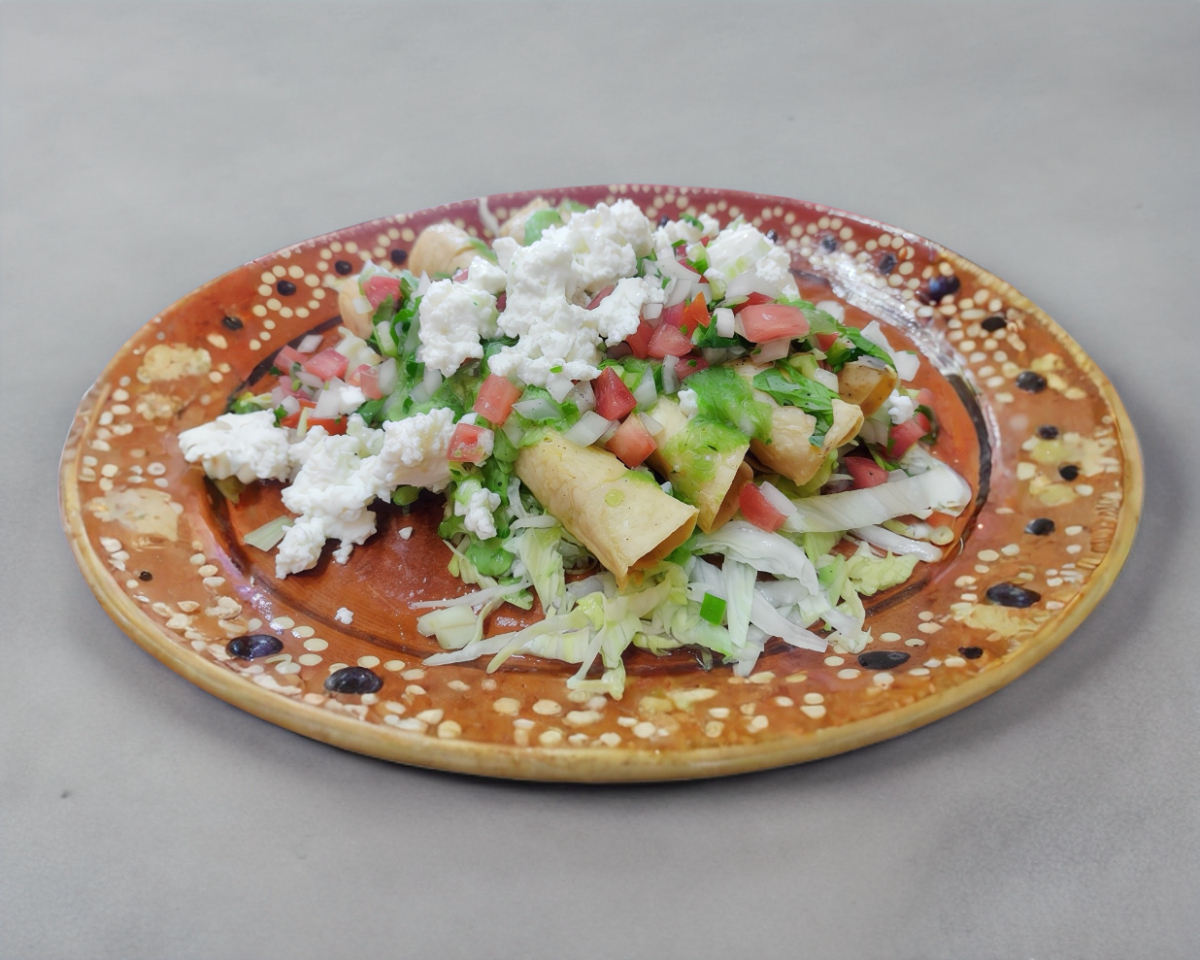 3 piezas, bañadas con guacamole picante, crema y queso fresco.