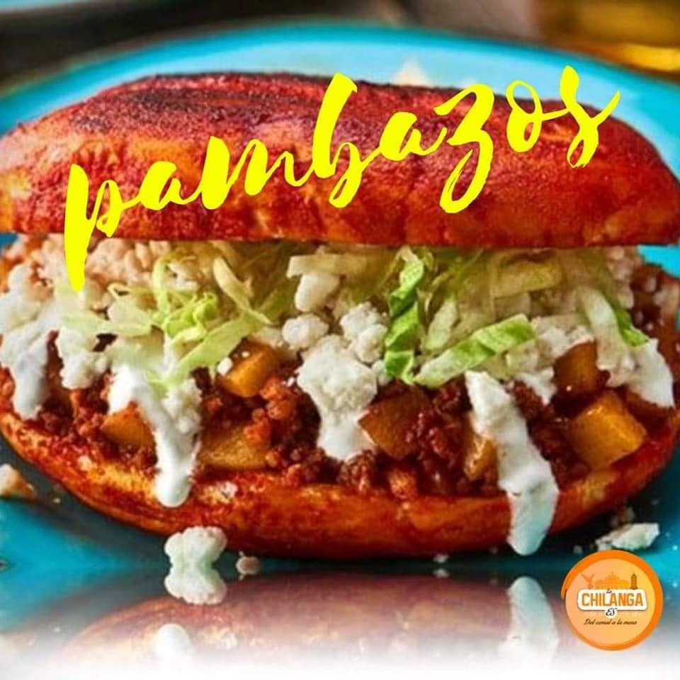 Torta adobada servida con papa con chorizo, lechuga crema y queso
