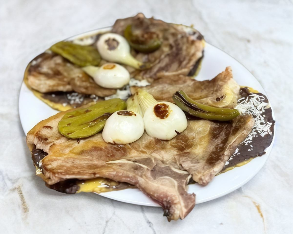 250 g. acompañado con chile toreado, nopal y cebolla cambray.