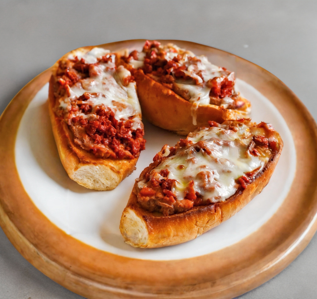 Sirloin, tocino, morrón tricolor, cebolla y queso manchego.