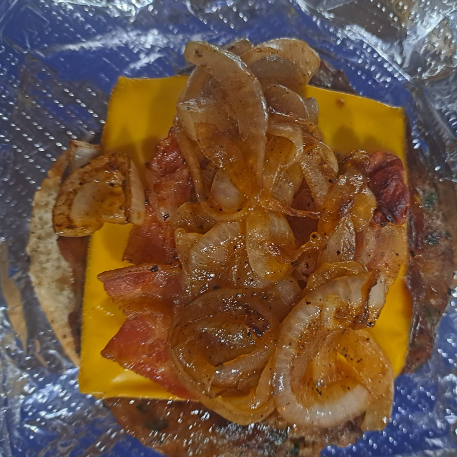 Carne sirloin, queso amarillo, tocino, salsa BBQ, cebolla caramelizada.