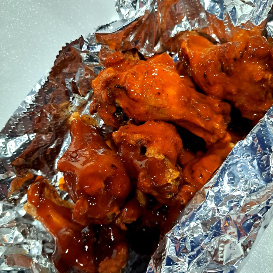 Salsa a elección BBQ o búfalo. (Incluye papas y aderezo)