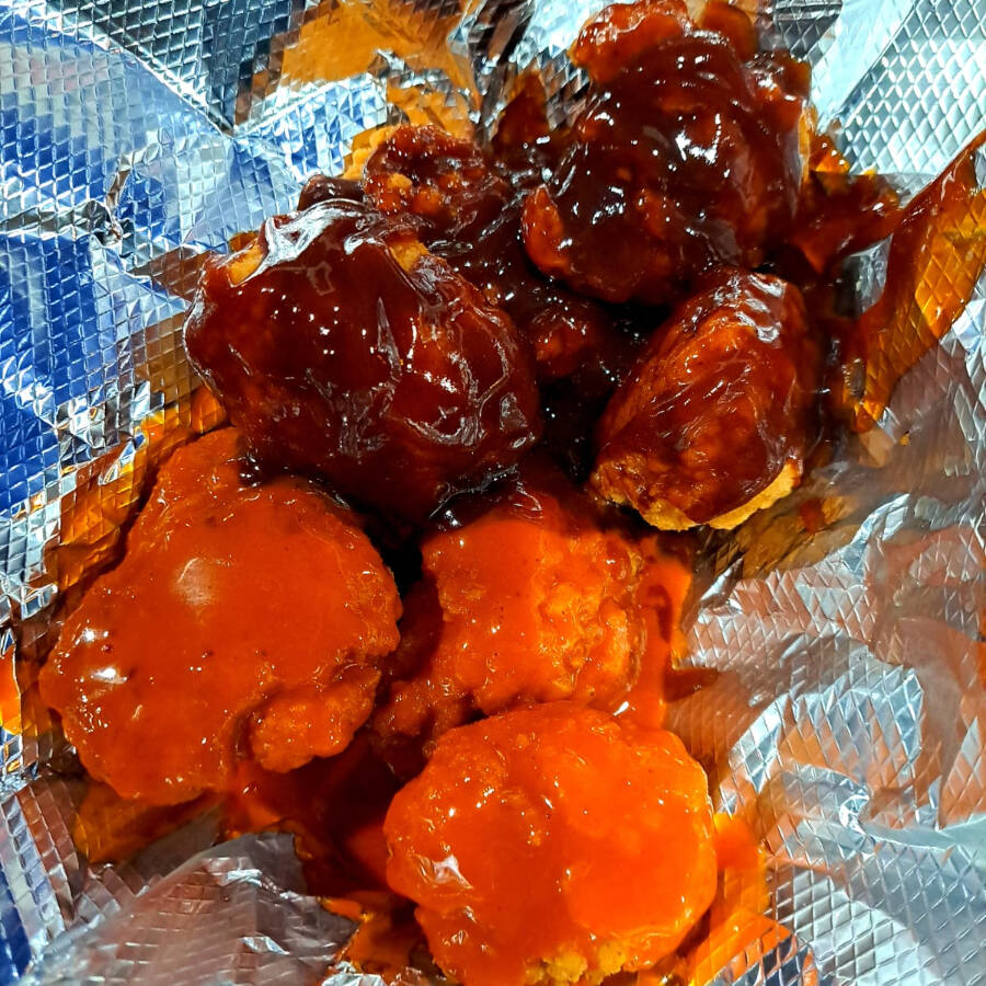 Aderezo de su elección BBQ o Búfalo. (Incluye papas y aderezó)
