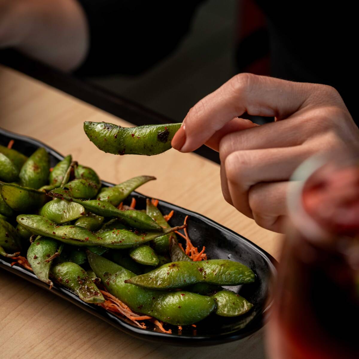 Tiernas vainas de soya, salteadas con un toque picante. ¡No dejes de probarlo!