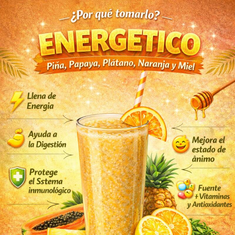 PIÑA, PAPAYA, PLATANO, NARANJA, MIEL