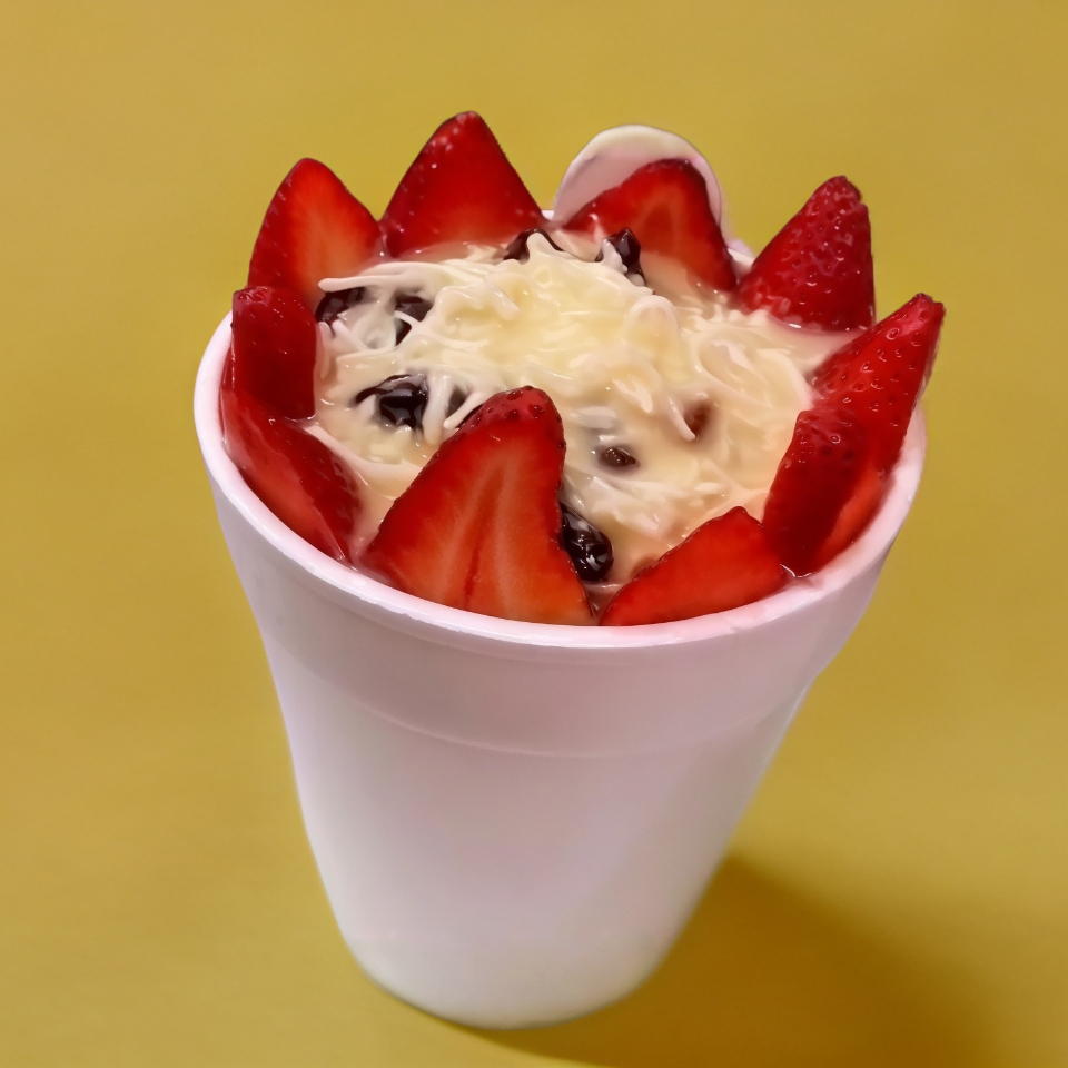 papaya, melon, manzana, pera, platano, fresa, yogurt, nuez, pasa, coco, granola, miel