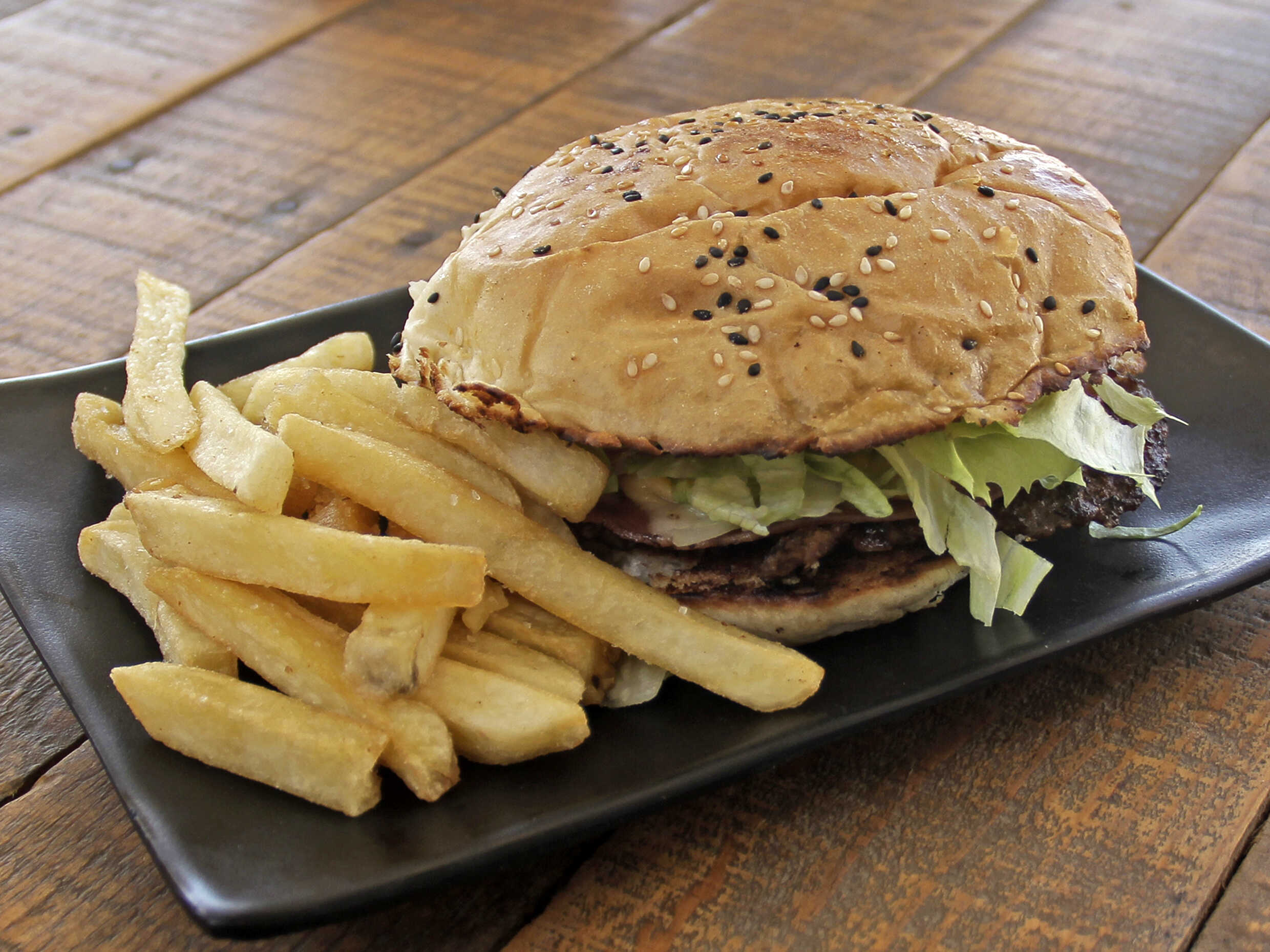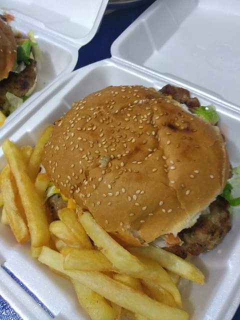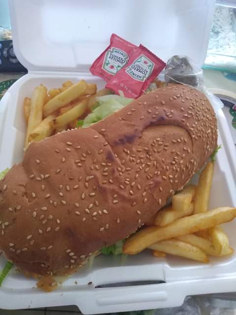 Carne,queso amarillo,lechuga, tomate, cebolla, aguacate, crema, mostaza. ( sin papas)