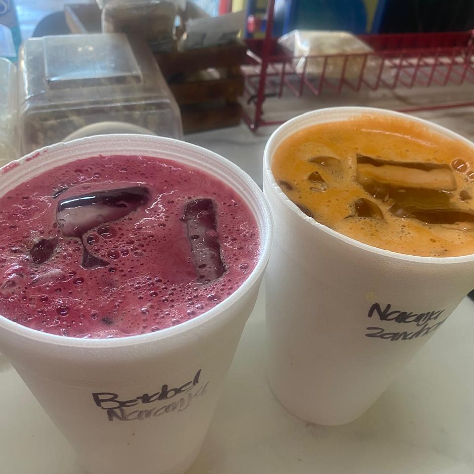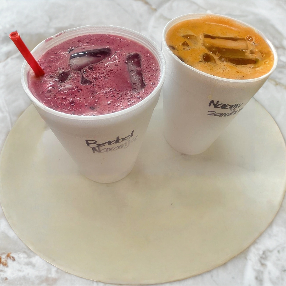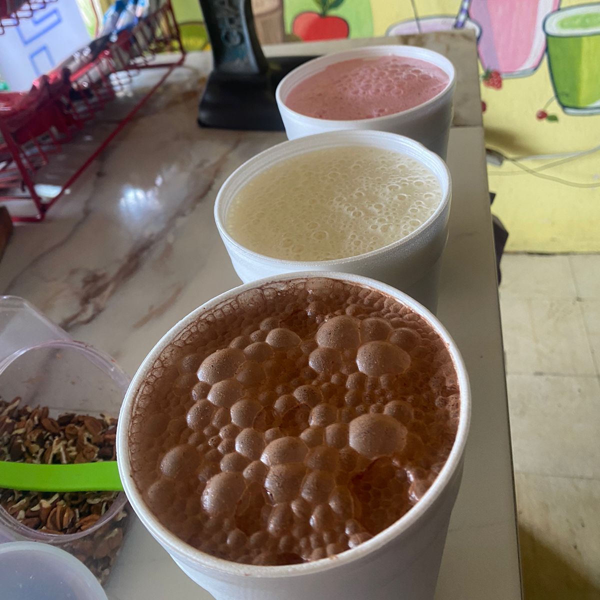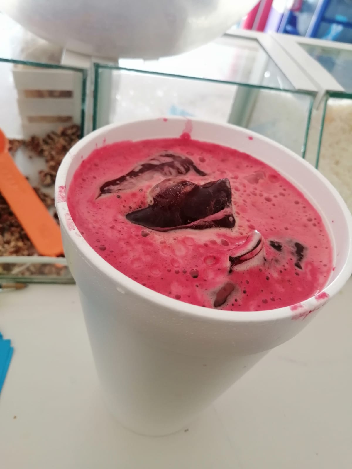 Papaya,melón,plátano,manzana verde,manzana roja,fresa. En una:cereales:coco,granola pasas,nuez y lecherita