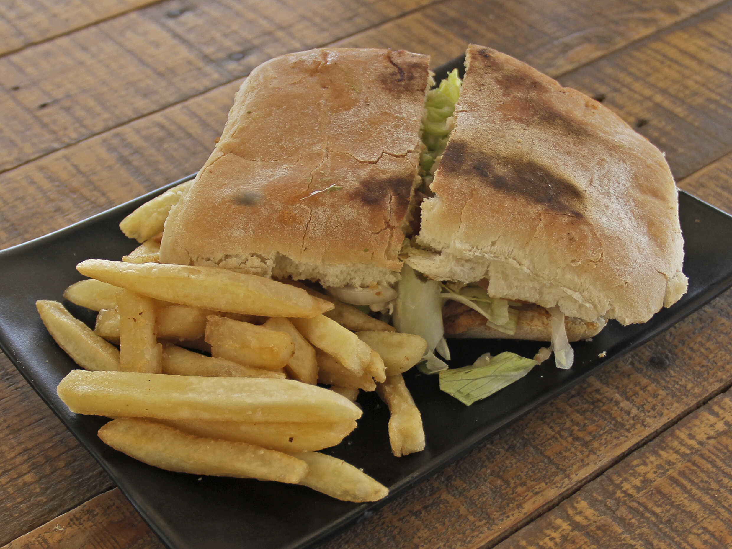 Pollo ala plancha, lechuga, tomates, cebolla y aguacate lleva aderezo chipotle.