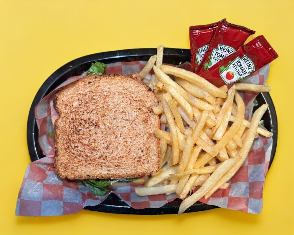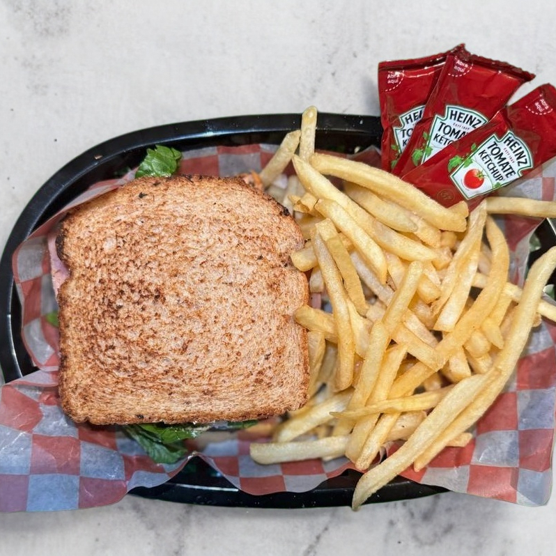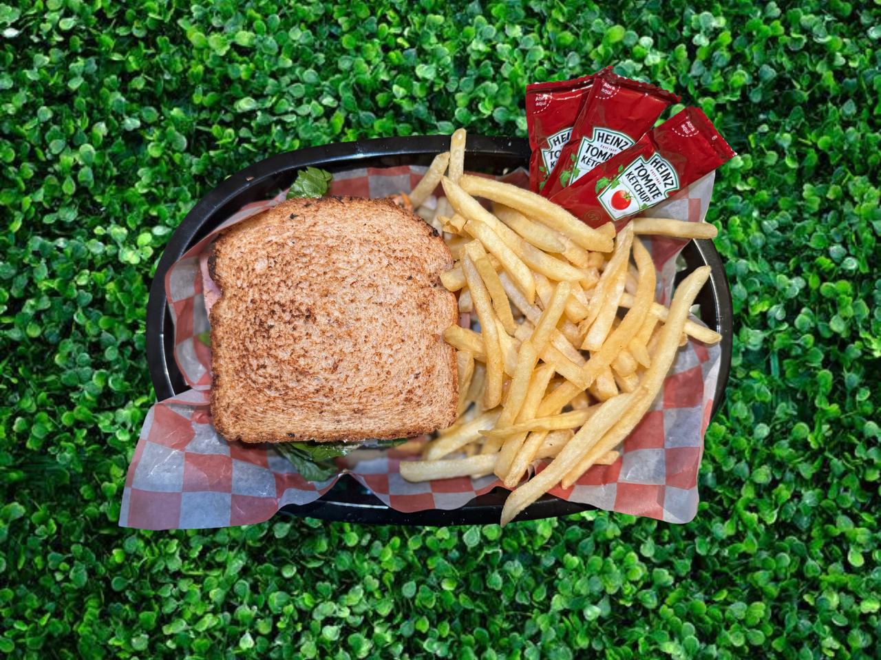 Jamon de Pechuga de Pavo, Queso Americano, Mayonesa, Crema, Tomate, Cebolla, Lechuga y Aguacate.