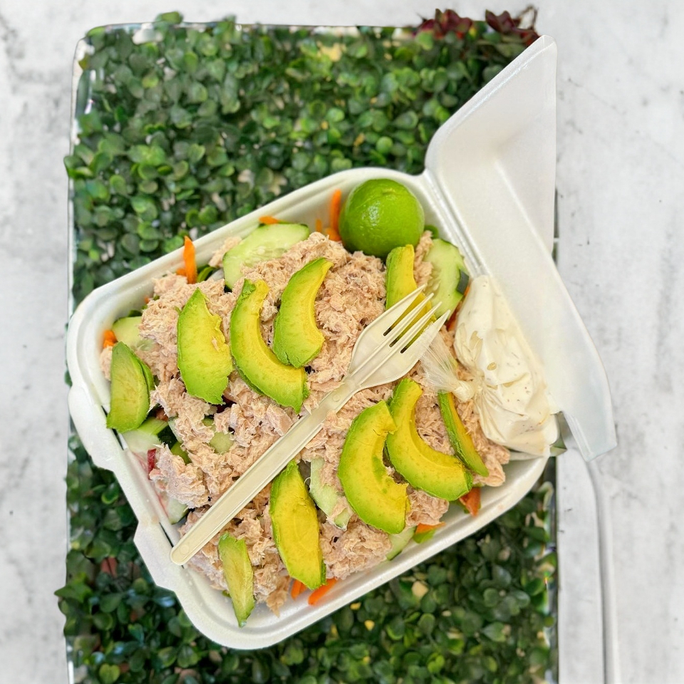 Atun, Mayonesa, Crema, Tomate, Cebolla, Lechuga y Aguacate.
