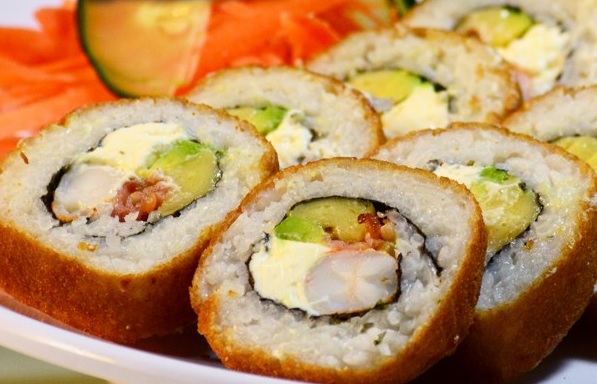 Relleno: aguacate, philadelphia, camarón o cangrejo Arriba: tampico
