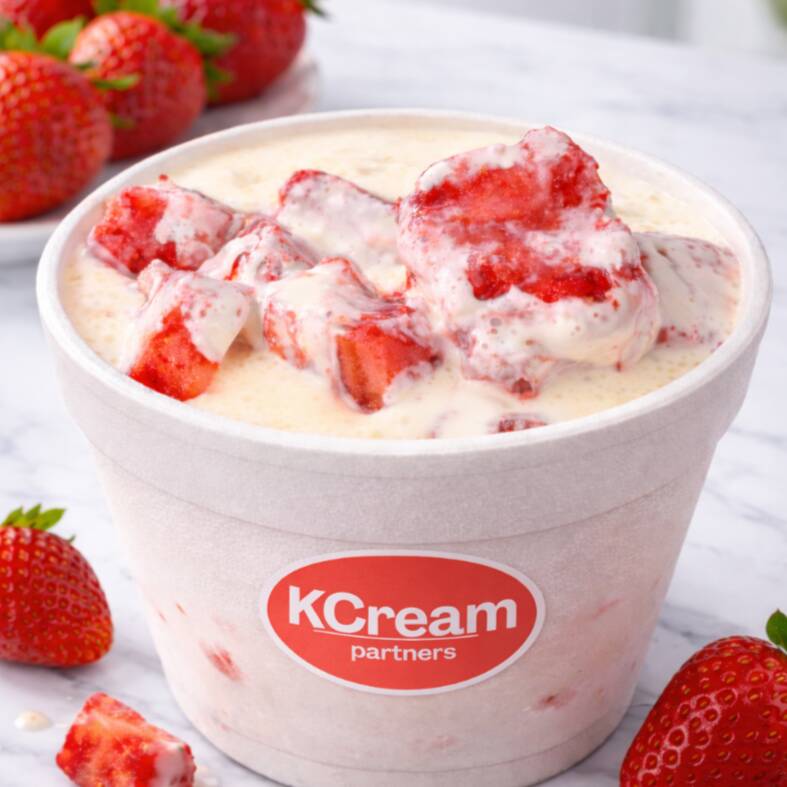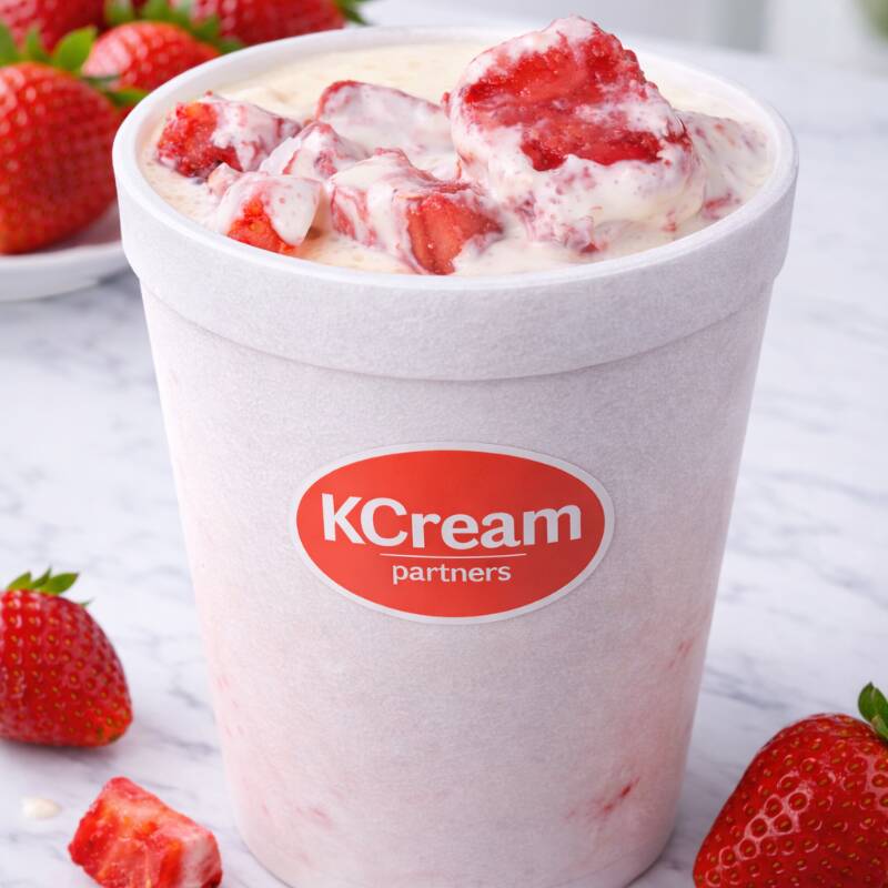 Porción grande para compartir. Deliciosas fresas congeladas con crema de textura suave y liquida con el rico sabor que nunca falla.