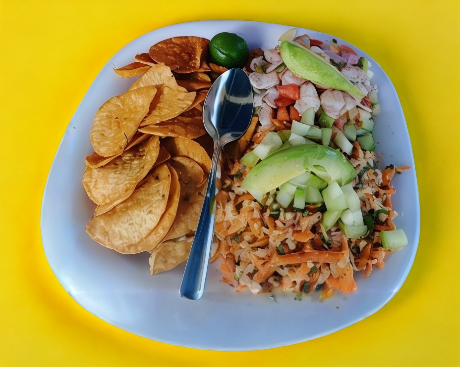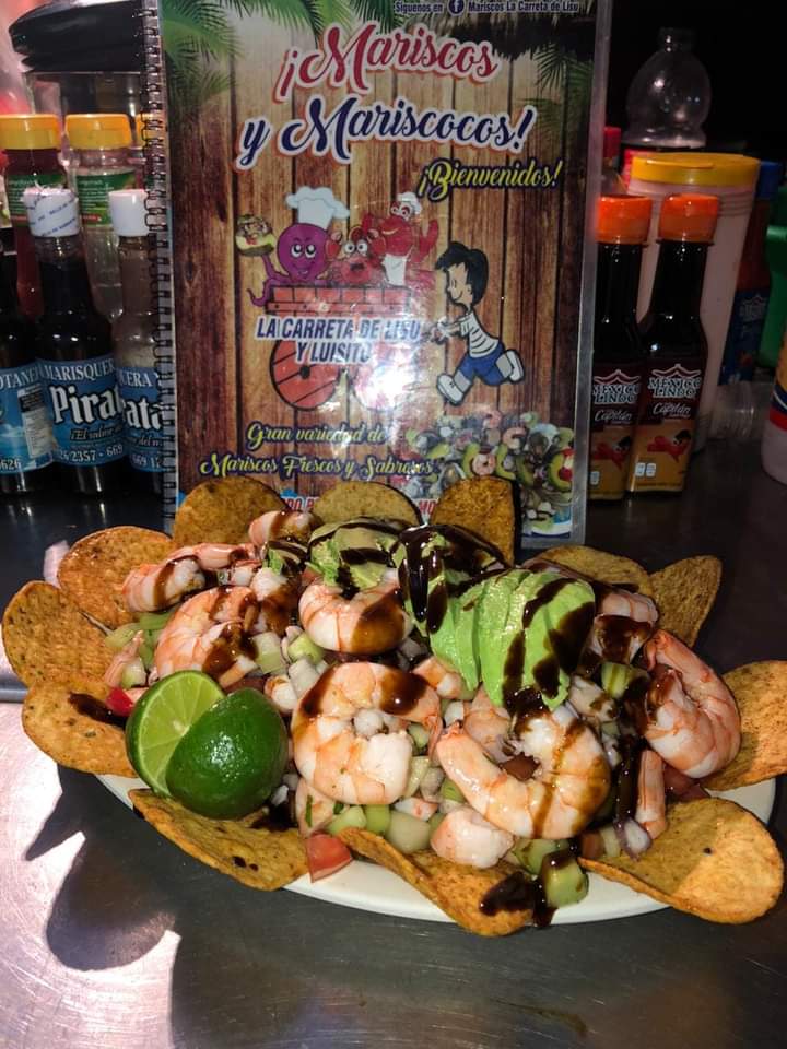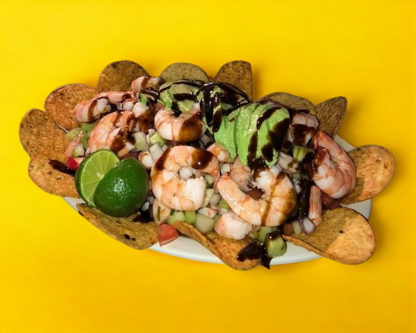 coco tiernito camarón mariposeado curtido en salsa de aguachile