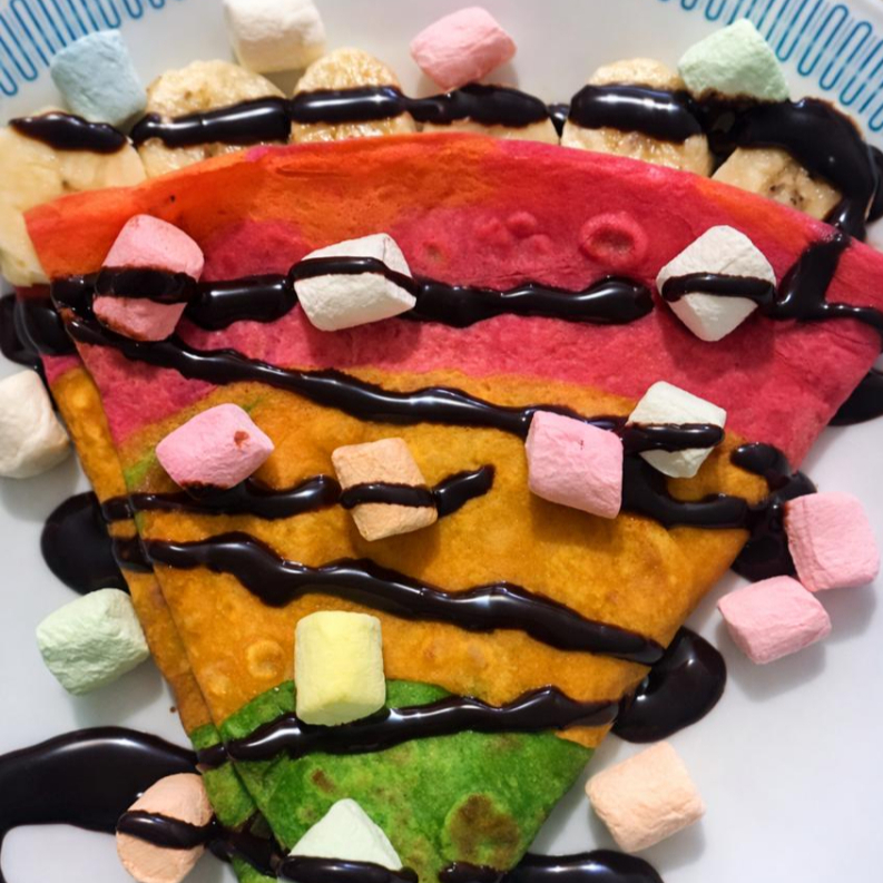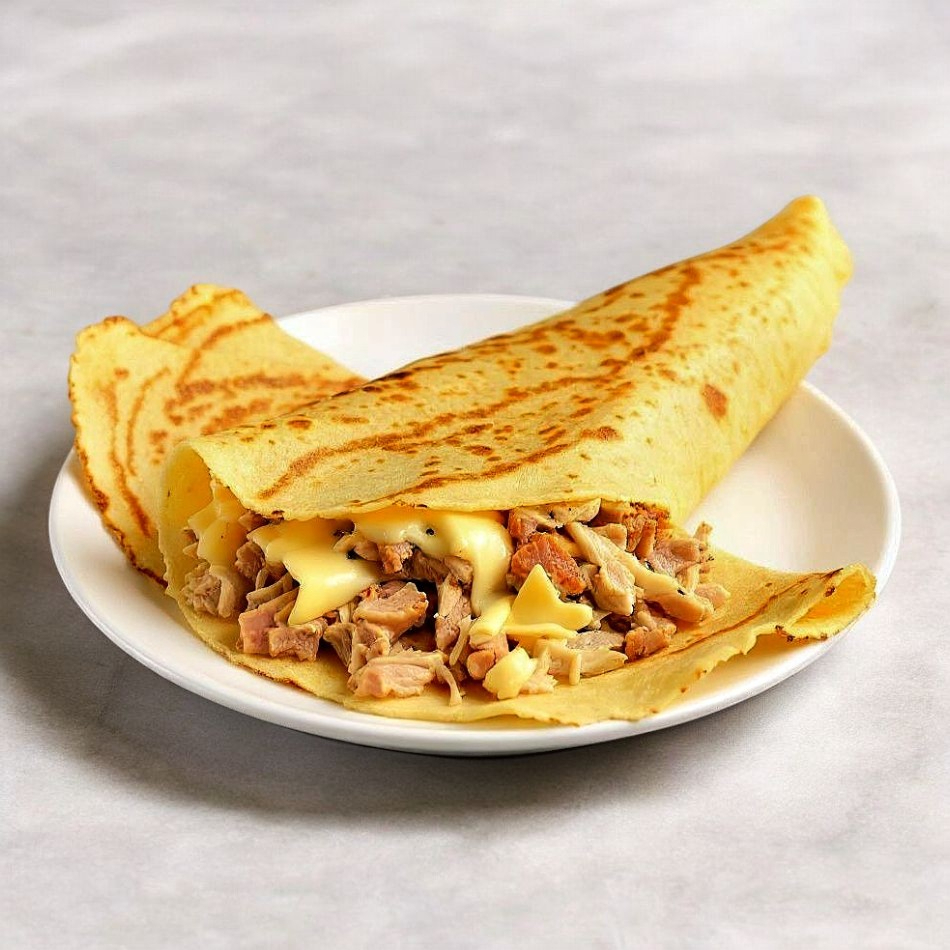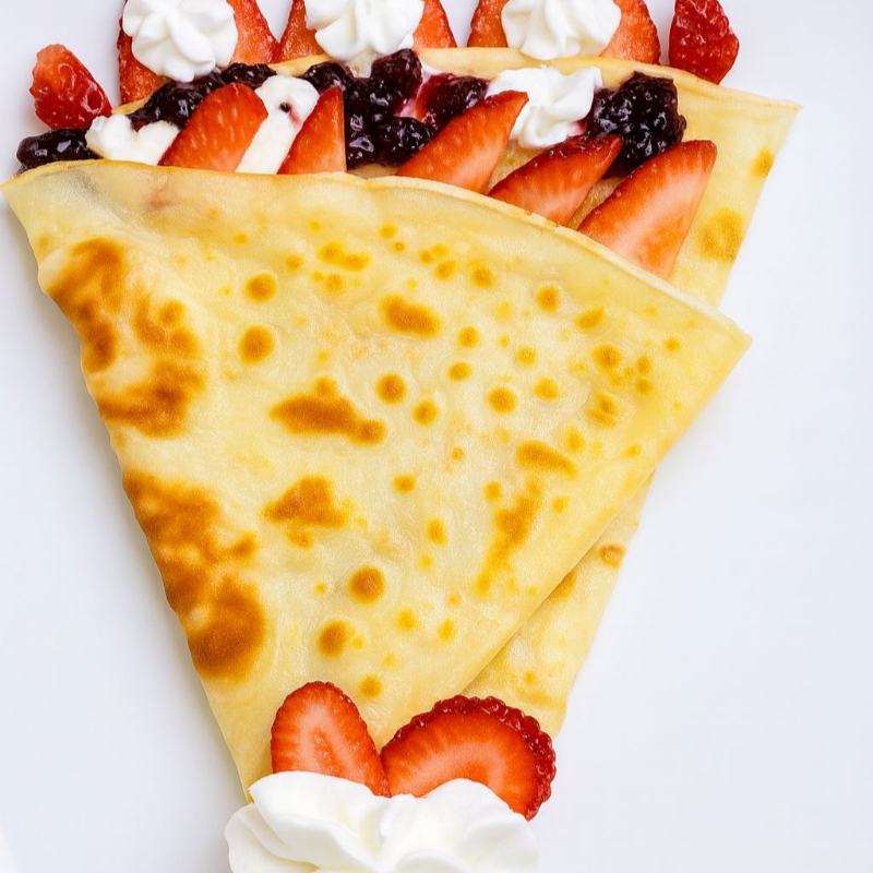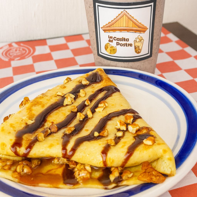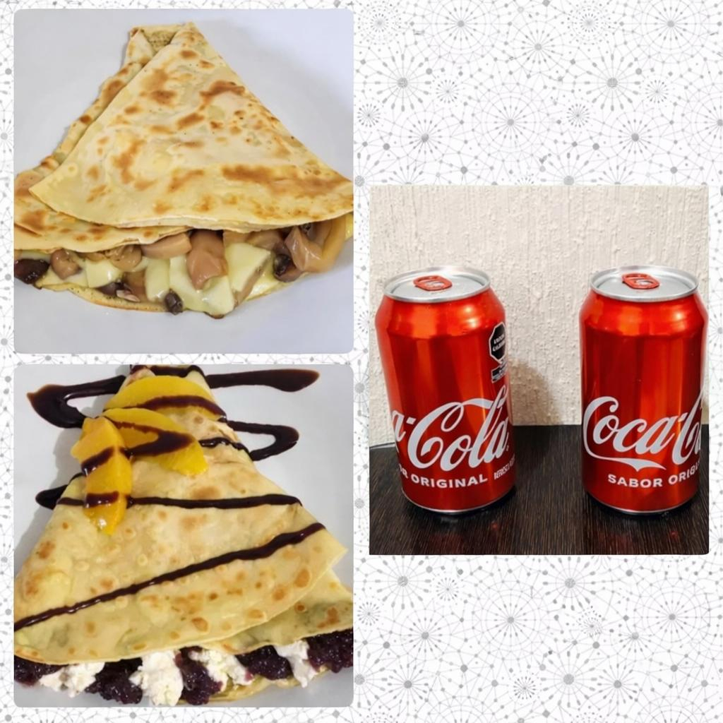 2 crepas saladas o dulces, 2 bebidas (aguas o refrescos)