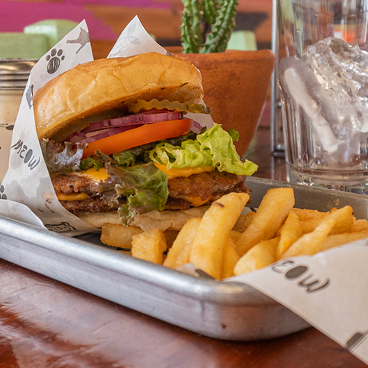 Elaborada con bollo de papa, jugosa carne de res (100 gr) a la plancha estilo smash, con queso americano y el inigualable aderezo IN-N-OUT, acompañado de papas a la francesa.