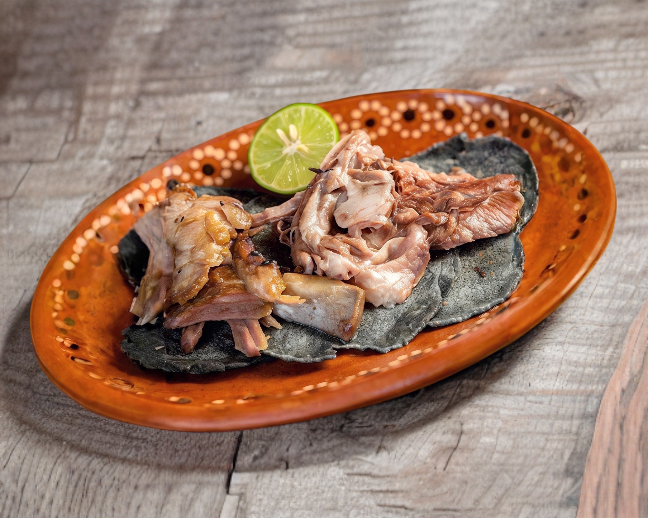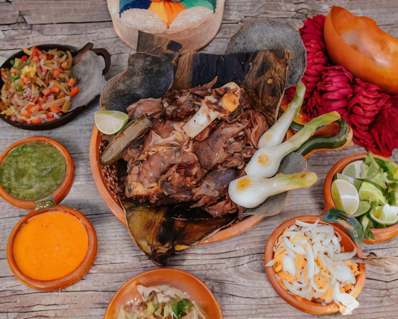 Tlacoyo con nuestra autentica barbacoa de borrego estilo hidalgo con penca de maguey y leña.
