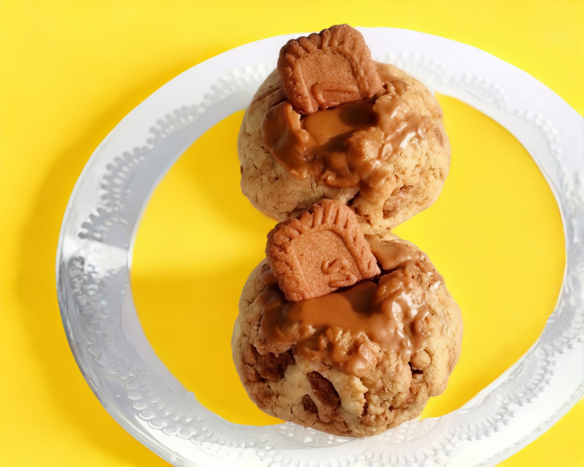 Deliciosa galleta hecha en casa con un toque de crema lotus biscoff y chispas de chocolate, una pieza.