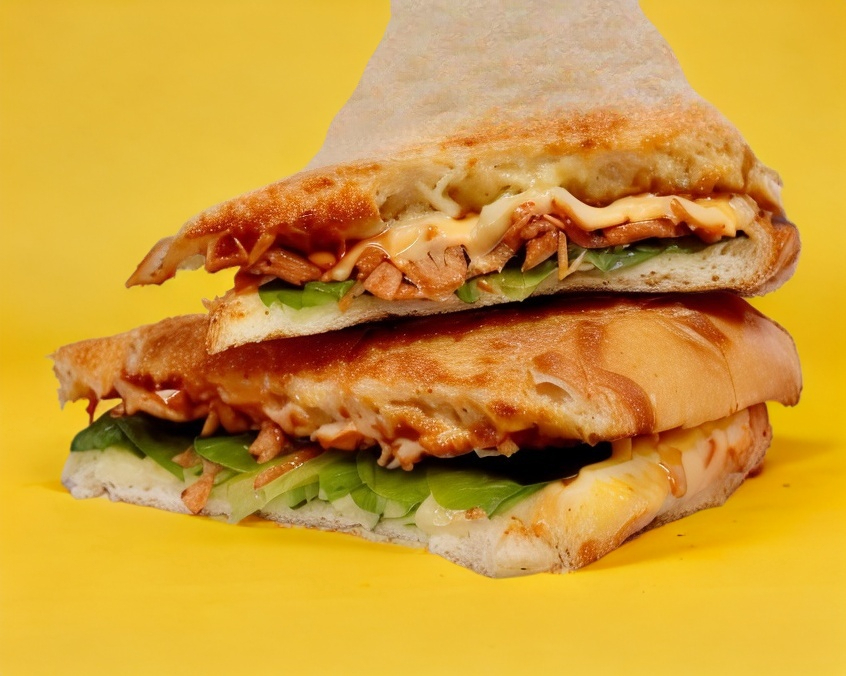 Delicioso panini de pierna con costra de queso.