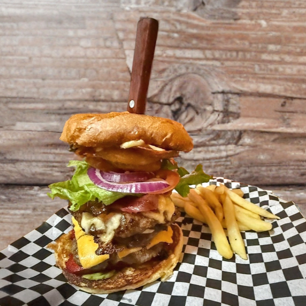 150 grs. de carne de res, tocino, queso chihuhua, pierna y Cebolla caramelizada.