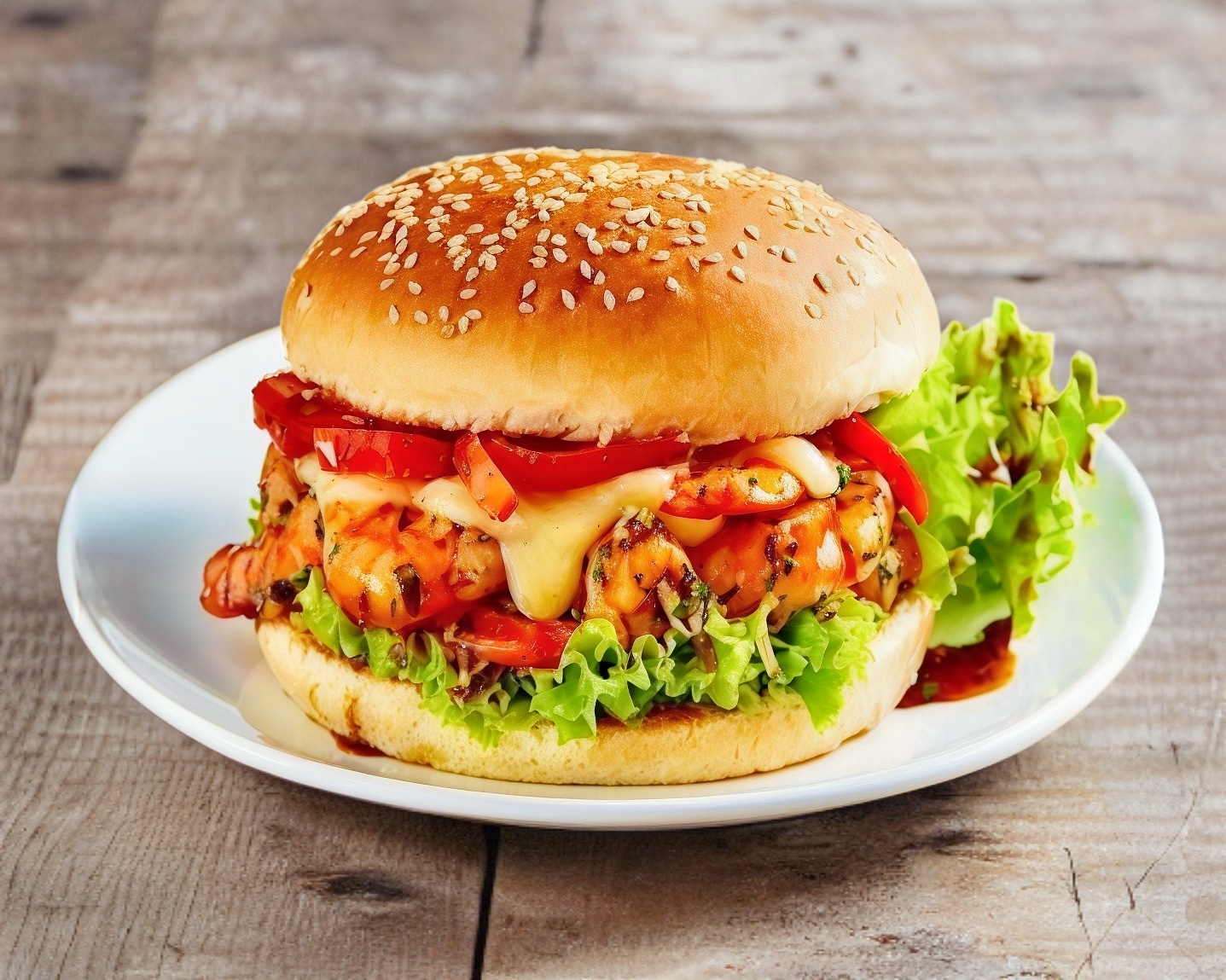 Camarones sazonados, queso chihuahua, queso americano, cebolla, lechuga, tomate. Con porción de papas a la francesa.