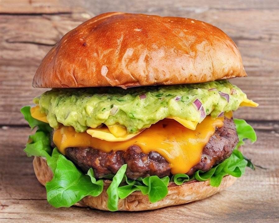 Carne deliciosamente asada a las brasas, guacamole especial de la casa, queso amarillo, cebolla, tomate, lechuga. Con porción de papas a la francesa.