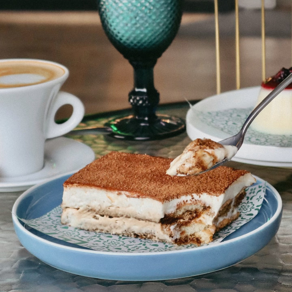 Sumérgete en la dulce tentación de nuestro tradicional tiramisú, el clásico postre italiano que combina capas de galleta savoiardi empapadas en café espresso borbone, junto con una suave y sedosa crema de mascarpone, rematando con un toque de cacao en polvo.