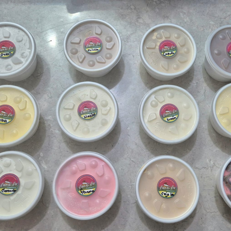 Helado a base de crema de queso combinado con el sabor de la cajeta, muchos trocitos de nuez y base de galleta. una delicia al paladar.