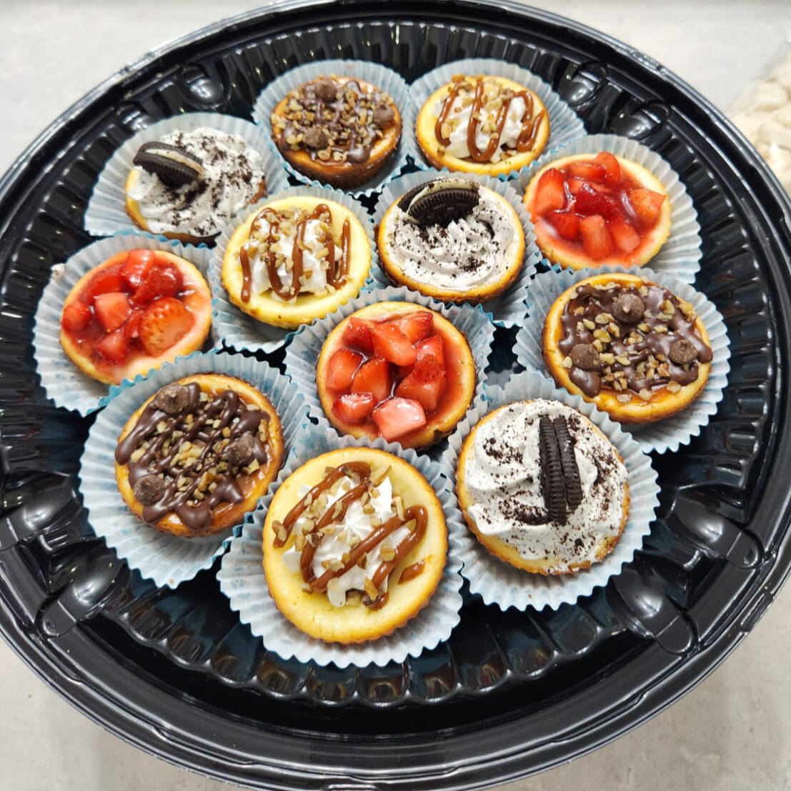 Charola de bocadillos de cheesecake Horneado con topping variado para todos los gustos! 🥰Deliciosamente adictivos,😋 una consistencia muy suave y muchooo sabor a quesoo🧀, sentiras que no puedes parar, con la mejor calidad