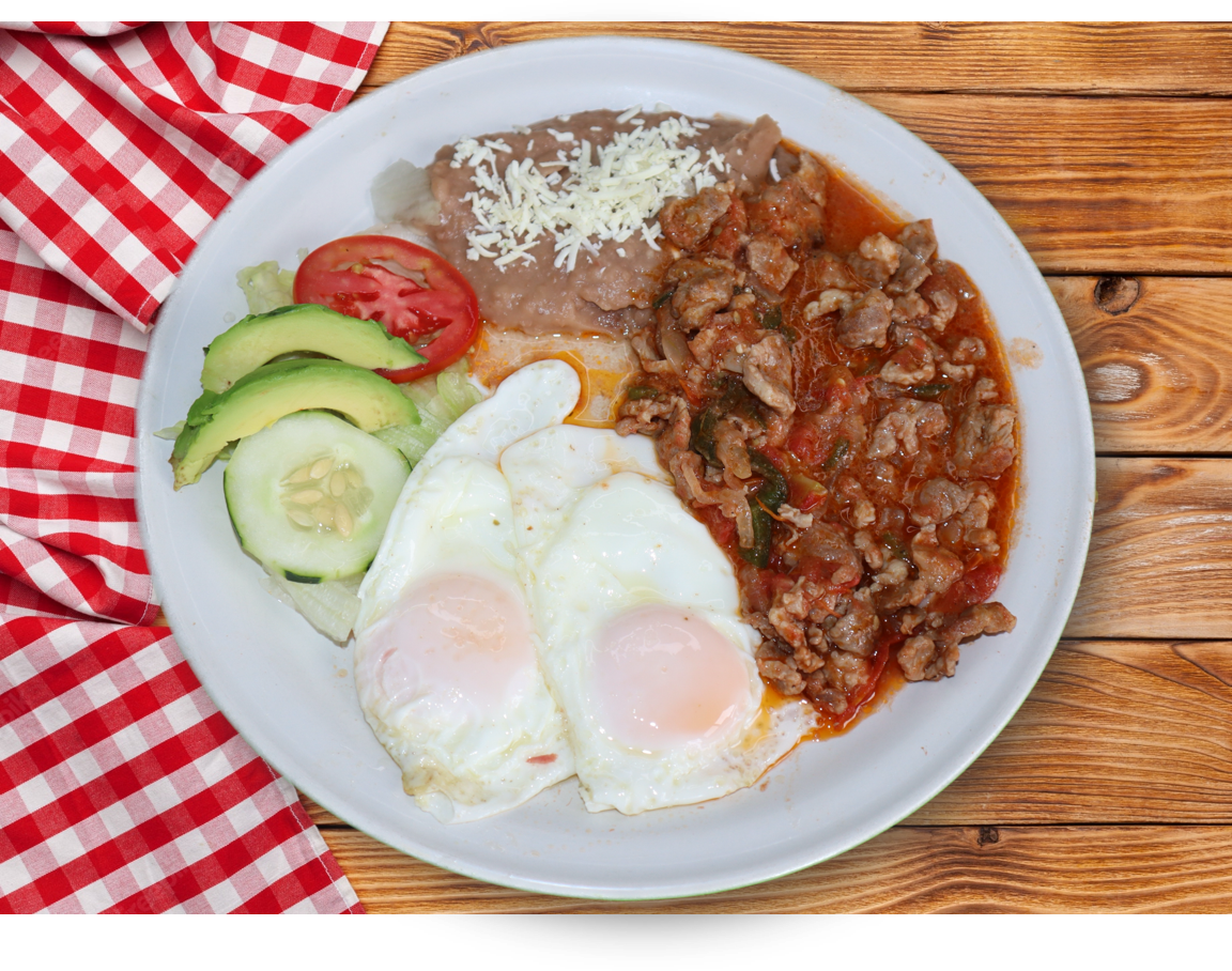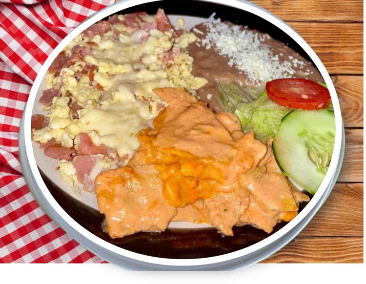 Huevos estrellados acompañados de nuestros ricos chilaquiles a elección