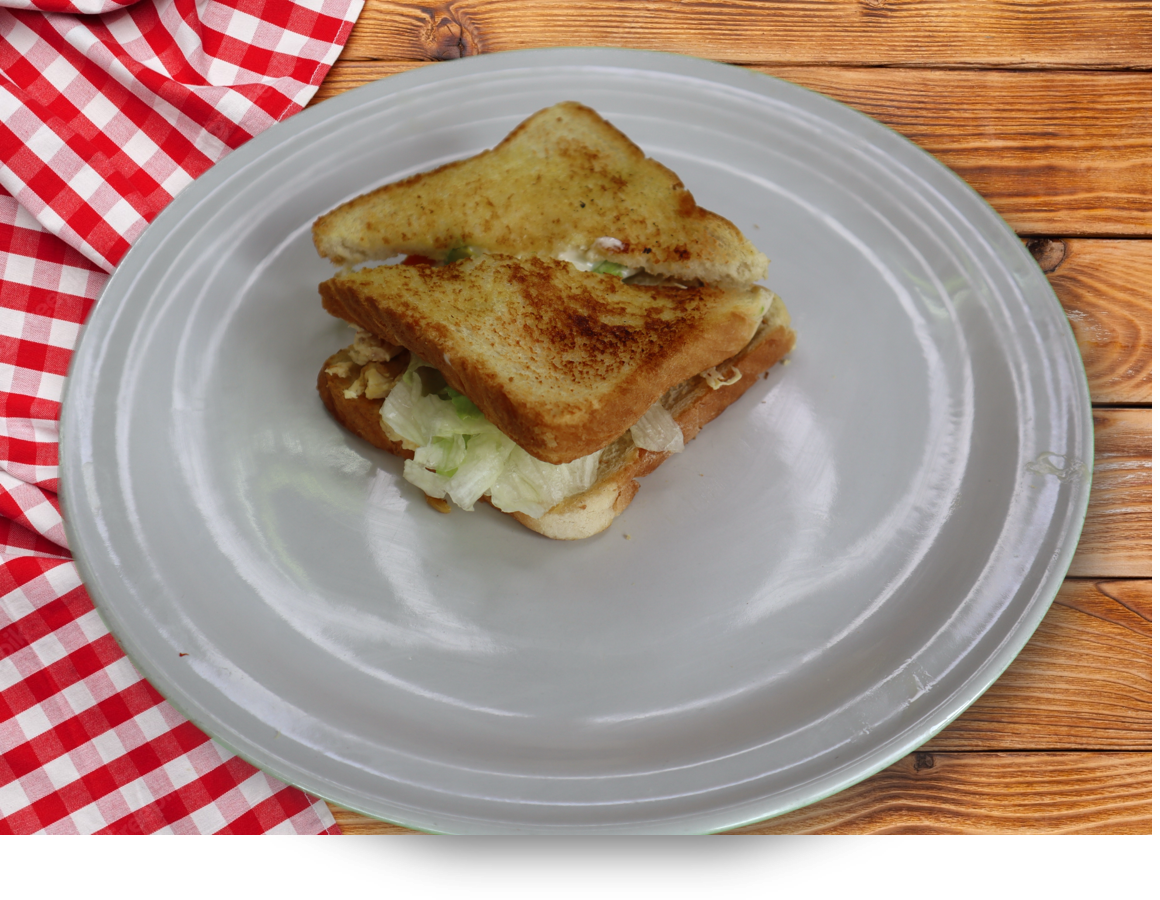 Torta de jamón y queso con lechuga ,tomate aguacate ,crema y mayonesa
