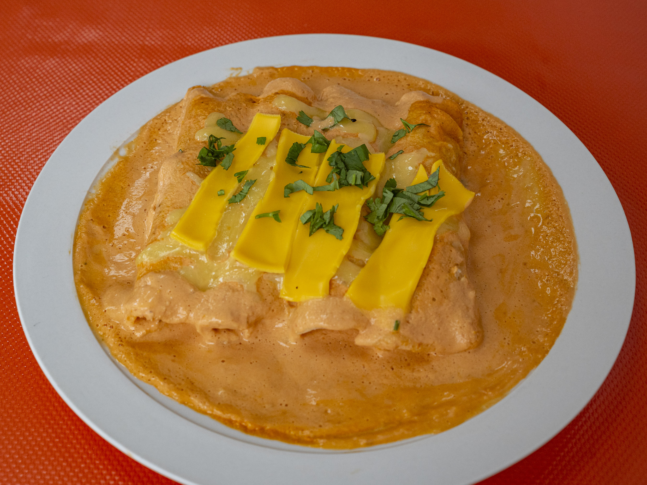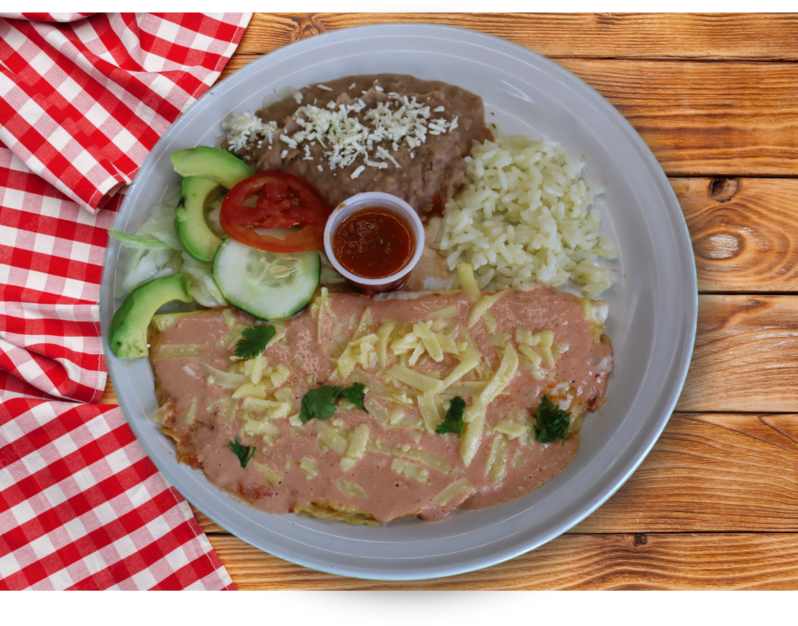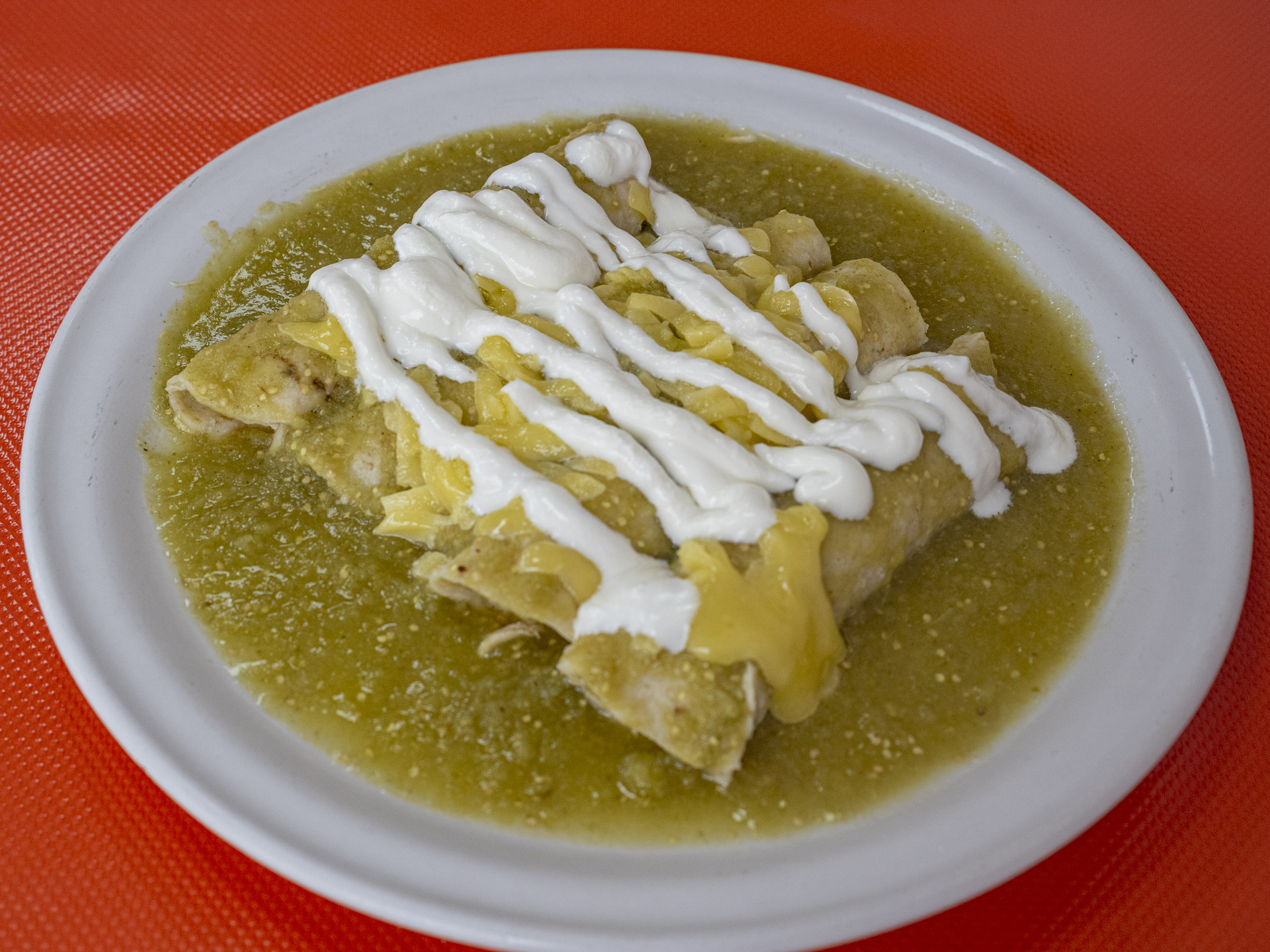 4 piezas de enchiladas en salsa de tomatillo de pollo o pierna